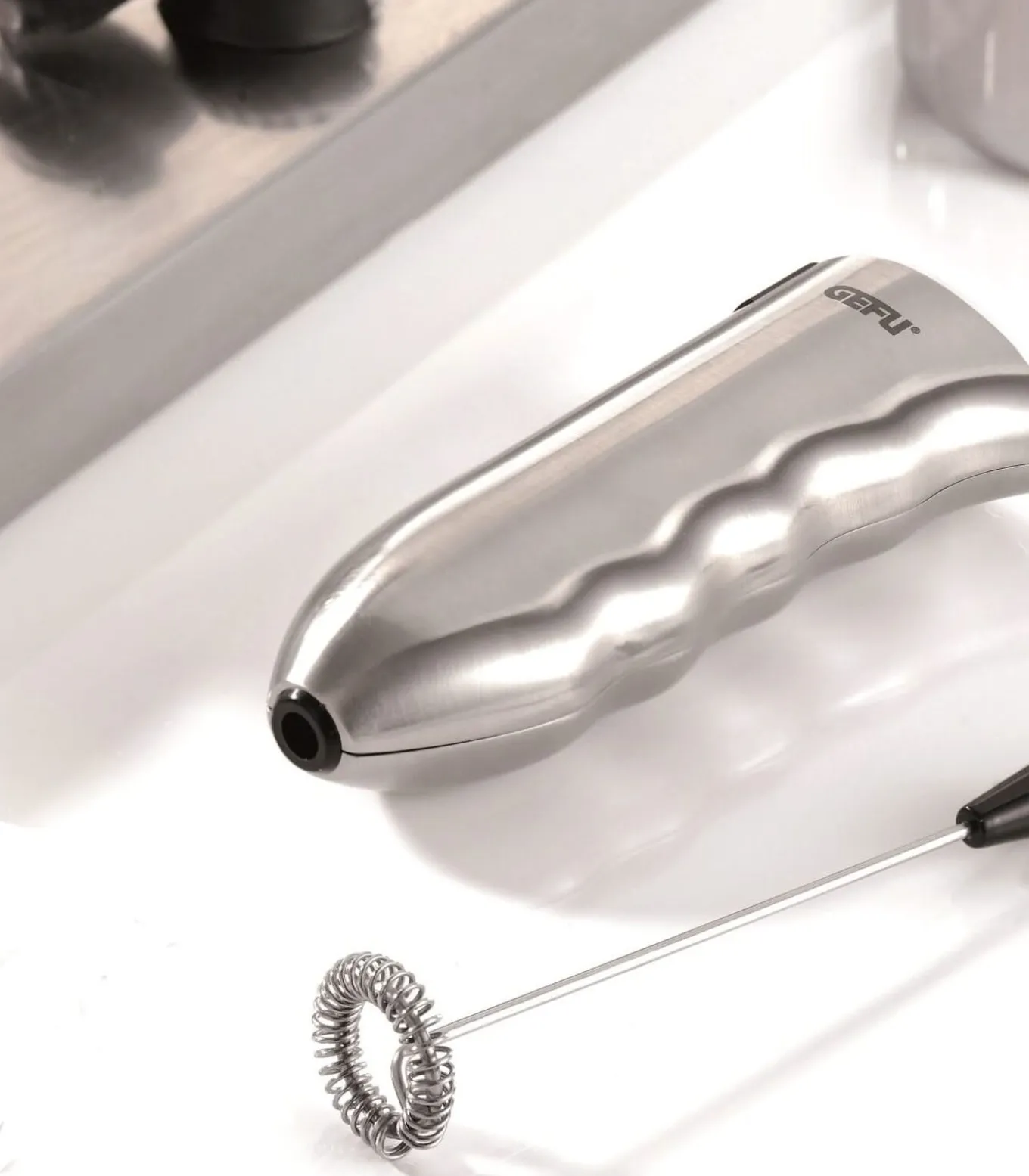 Met de Gefu Melkopschuimer Marcello is je melk luchtig opgeschuimt metéén druk op de knop. Daarnaast is de melkopschuimer comfortabel in gebruik dankzij het soft–touch oppervlak. De melkopschuimer werkt op 2 x AA batterijen, de batterijen zijn inbegrepen. De melkopschuimer is naast het opschuimen van melk, ook geschikt voor het bereiden van saus of dressing. Daarnaast is de melkopschuimer ook gemakkelijk te gebruiken voor smoothies of cocktails. De garde kan na gebruik gereinigd worden in de vaatwasmachine. De producten van het Duitse merk Gefu zijn gebruiksvriendelijk en besparen je veel tijd in het bereiden van maaltijden. De keukenhulpjes staan bekend om hun functionaliteit, hoge kwaliteit en hun aantrekkelijke design. Dit wordt bewezen door de lange lijst van prijswinnende Gefu keukenhulpjes in de Red Dot Awards.