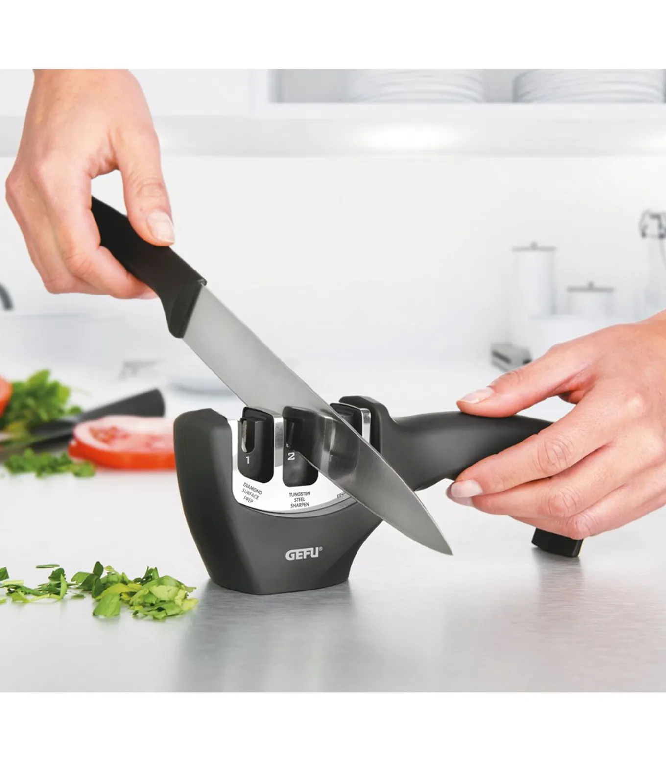 • weer scherpe messen in 3 stappen• veilige grip door antislip–rubberbekleding• ergonomische handgreep