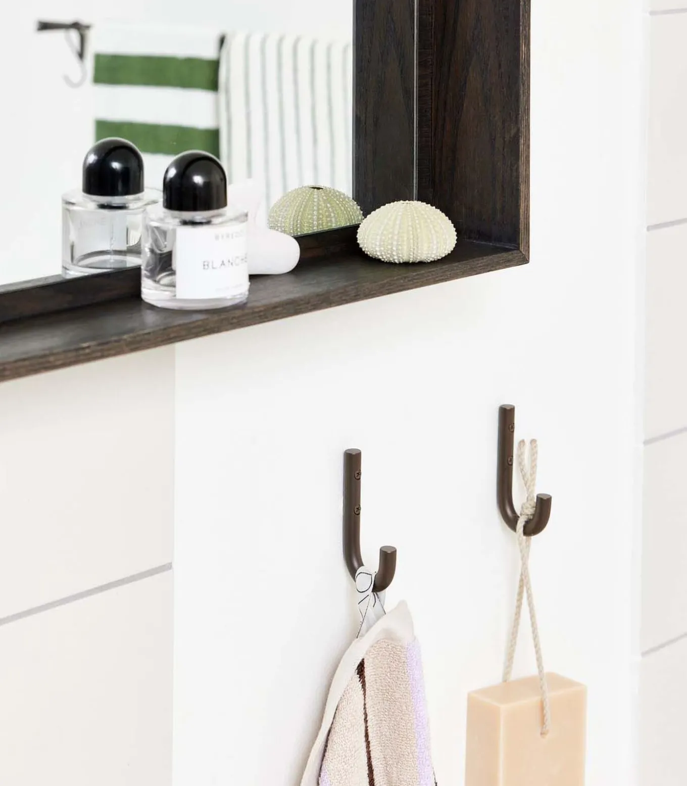 Met zijn strakke en minimalistische ontwerp passen onze Pieni haken naadloos in elk interieur. De natuurlijke kleuropties passen bij elk interieur en voegen een vleugje elegantie toe aan uw ruimte. Deze haken zijn met oog voor detail gemaakt van hoogwaardig roestvrij staal om duurzaamheid en een lange levensduur te garanderen. Gebruik de Pieni haken voor handdoeken, badjassen en keukenbenodigdheden.