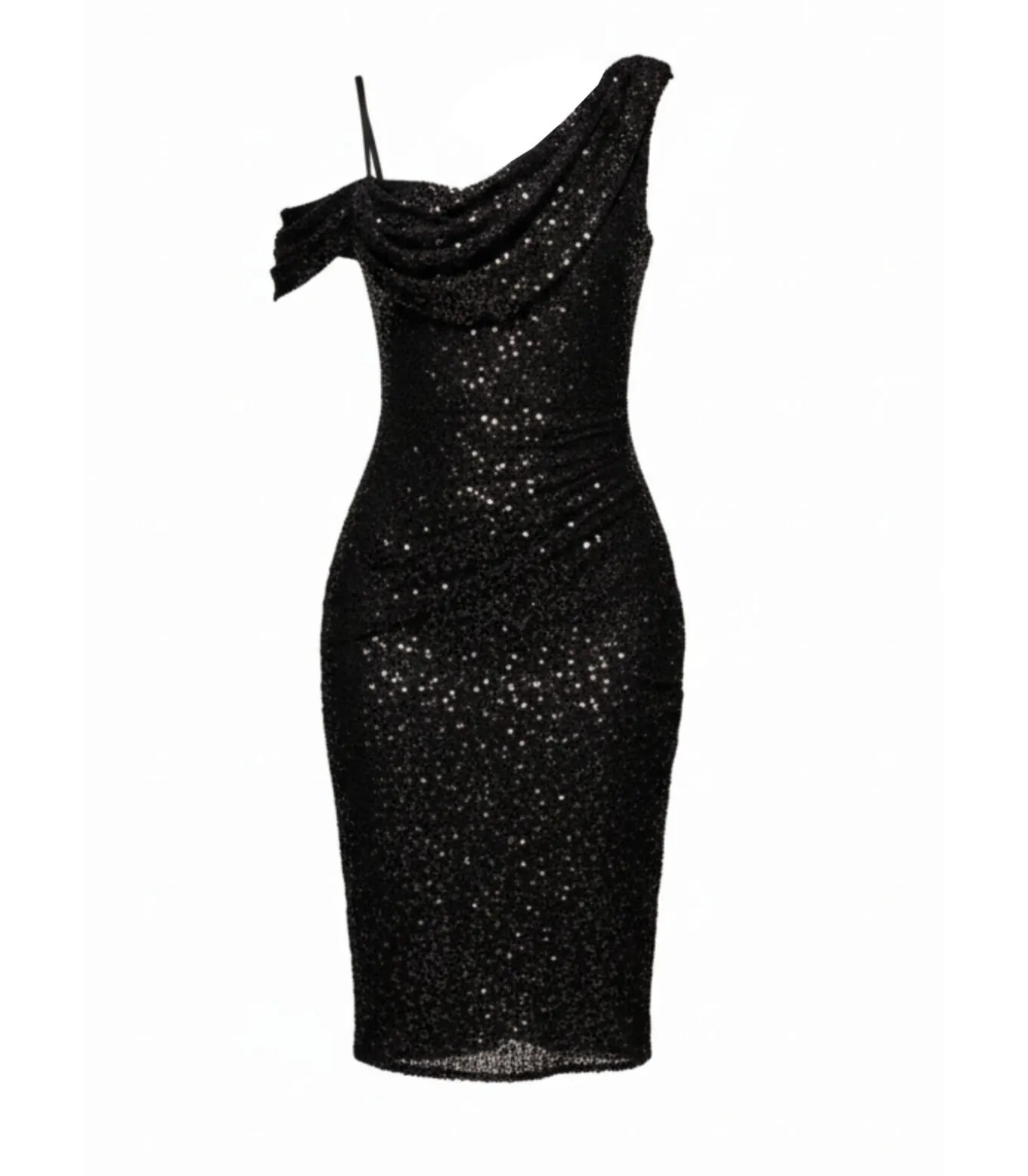 Trek alle ogen naar je toe met de Goddiva Sequin Cowl One Shoulder Midi Dress in zwart – een elegante mix van glamour en verfijning. De jurk is ontworpen voor speciale gelegenheden, heeft een chic one–shoulder design met een gedrapeerde waterval halslijn en voegt een uniek, stijlvol accent toe aan je look. De midilengte is ideaal voor bruiloftsgasten, avondjes uit met vrienden of romantische afspraakjes, terwijl de zwarte pailletten glitter toevoegen bij elke stap. Deze jurk is moeiteloos stijlvol en zelfverzekerd en is de perfecte keuze om een onvergetelijke indruk te maken.