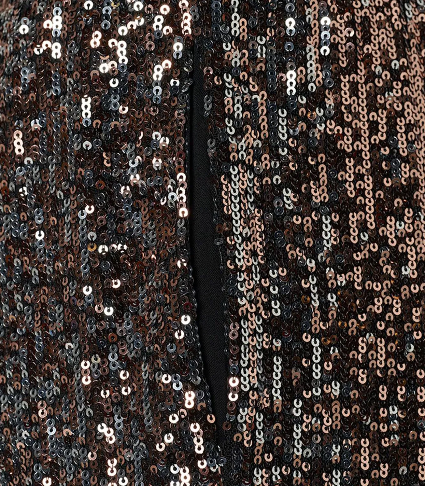 Creëer een glamoureuze feestlook met de Mira paillettenbroek van Mart Visser. De broek is volledig bedekt met glanzende pailletten die op een bijpassende basis zijn verwerkt en zo een chique en sprankelende uitstraling geven. Dankzij de elastische tailleband geniet je van ultiem draagcomfort, terwijl de rechte, vloeiende pijpen een elegant en flatterend silhouet vormen. Het ontwerp combineert moeiteloos gemak en allure, waardoor deze broek geschikt is voor zowel formele diners als avondfeesten. Voor een uitgesproken ton–sur–ton stijl draag je hem met de matchende blouse. Wie meer verfijning zoekt, kan kiezen voor een zijden blouse en elegante hakken. Ga je liever voor casual–chic? Dan past de broek perfect bij een coltrui of een basic top met sneakers. Door de duurzame materialen en zorgvuldige afwerking blijft dit een luxe item dat seizoen na seizoen stijlvol oogt.