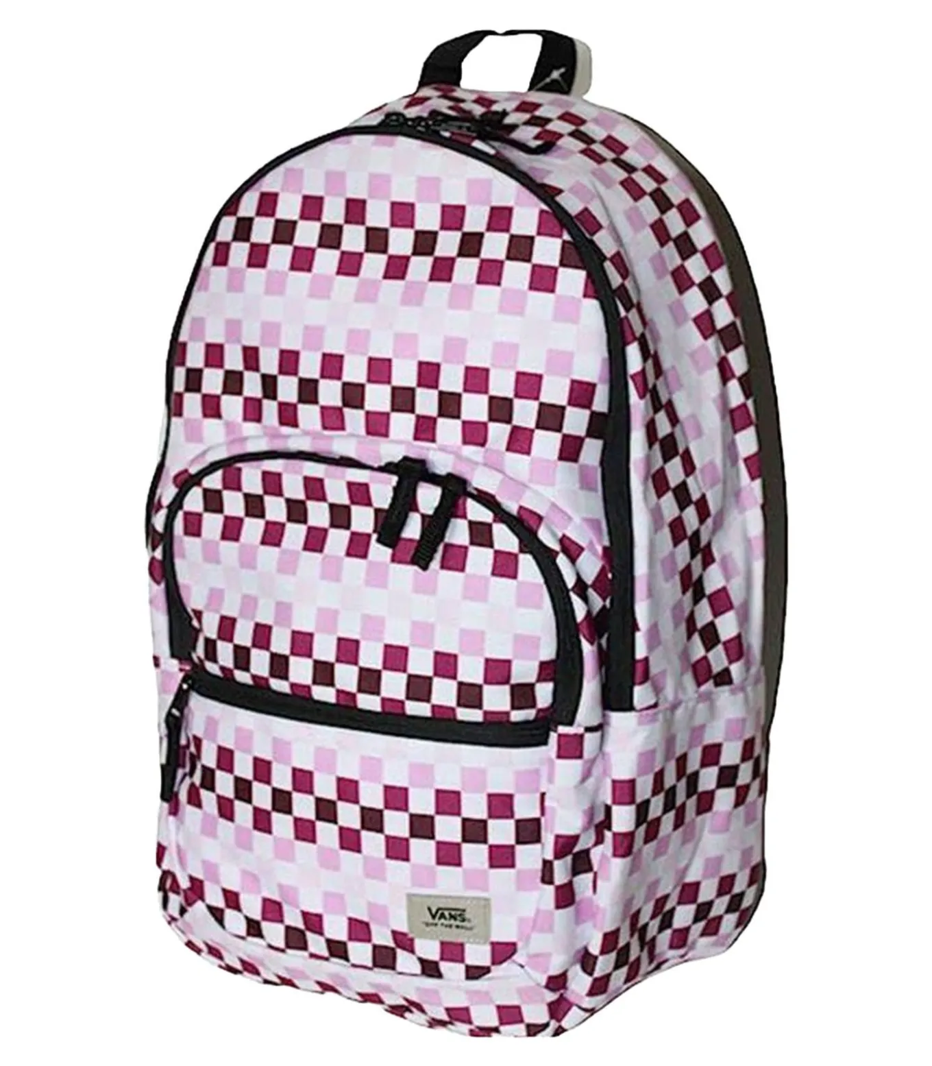 Vans MOTIVEE 3–B roze rugzak is gemaakt van polyester. De rugzak telt twee buitenzakken en een hoofdcompartiment met rijtjes. Het ontwerp van deze rugzak is gestreept met het Vans logo. De rugzak heeft een verstelbare schouderriem, handvat en versterkte achterkant. Om de rugzak vast te zetten, gebruikt u een tweewegriem.