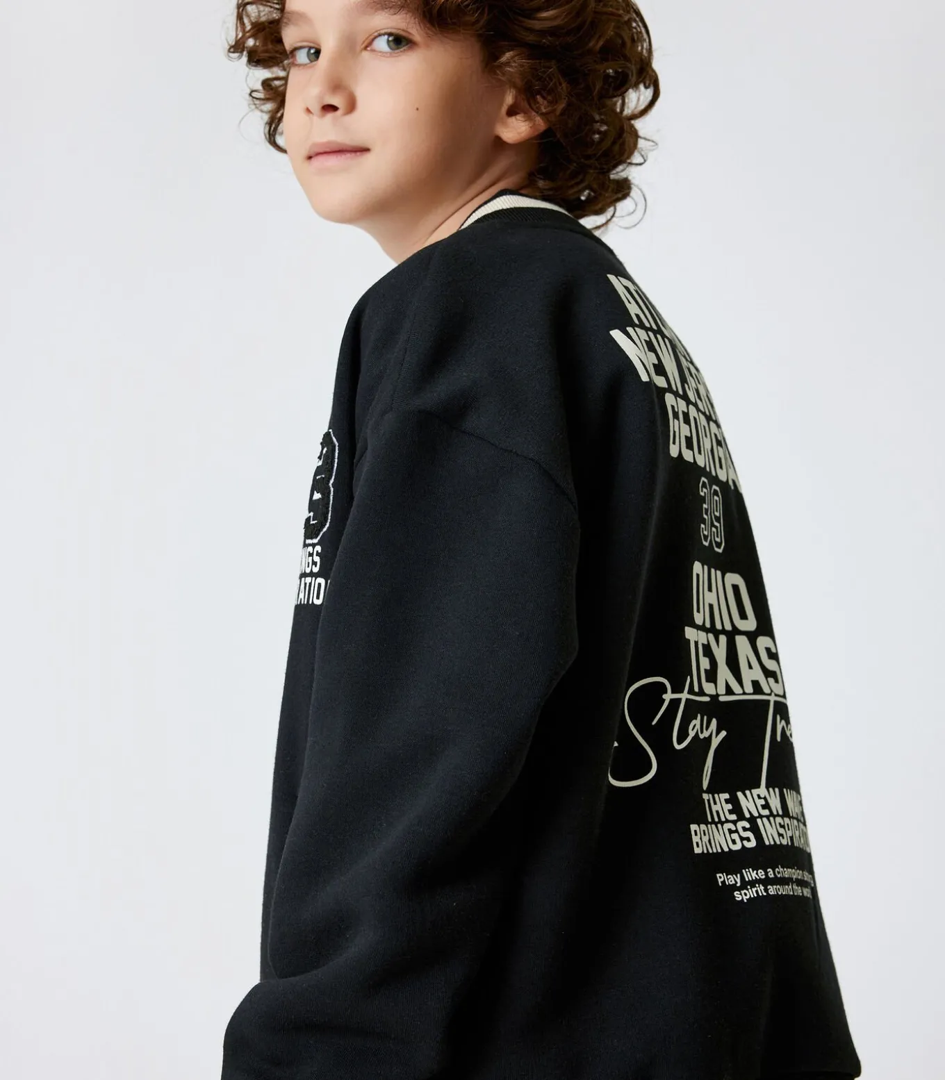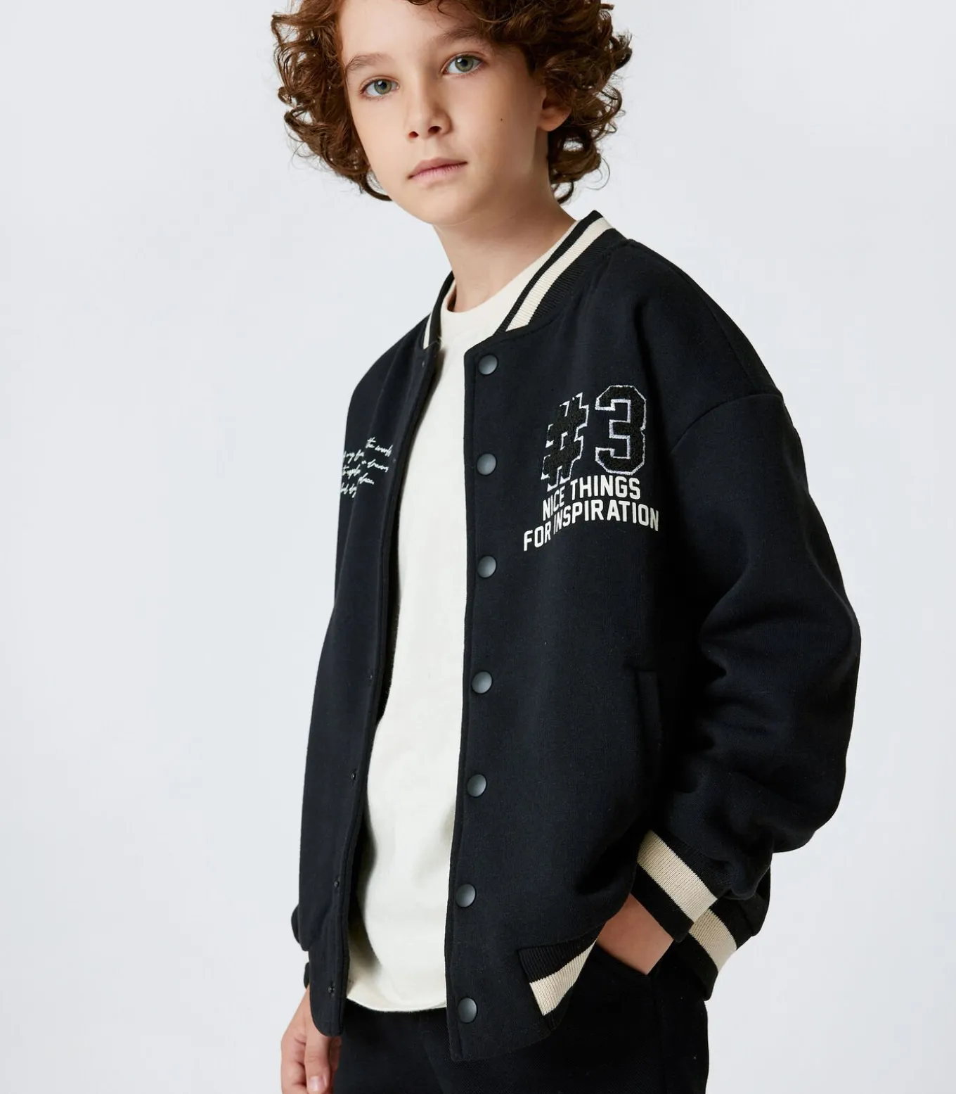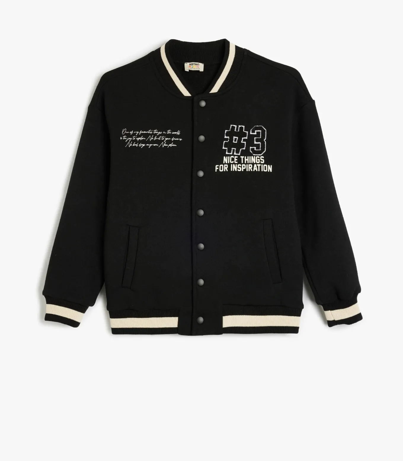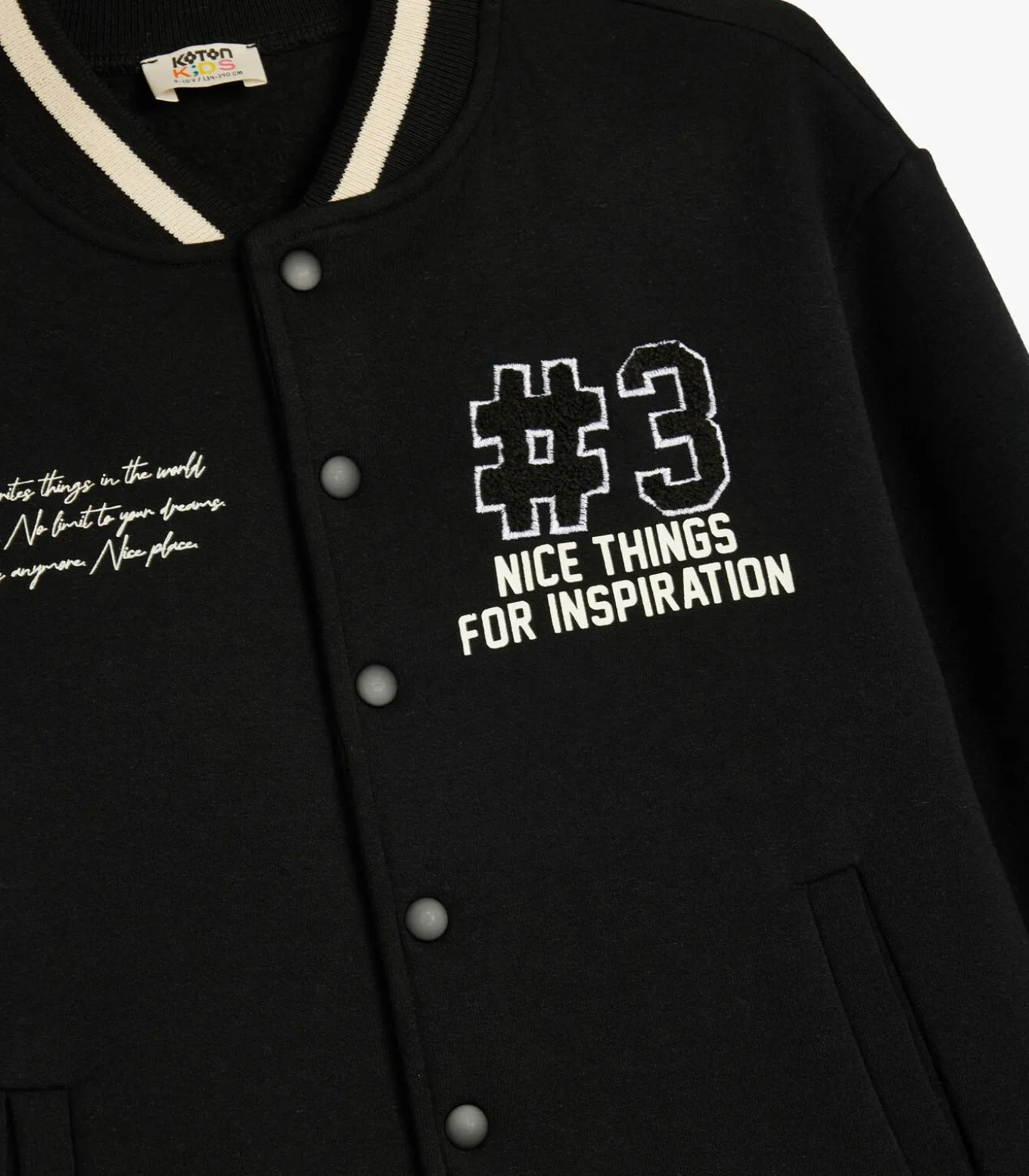 Geregenereerd Drukknoop gedetailleerd Gemengd afdruk Slogan/Tekst Normaal Fleto dubbele zak Normale lengte Lange mouw Jas kraag Jasje