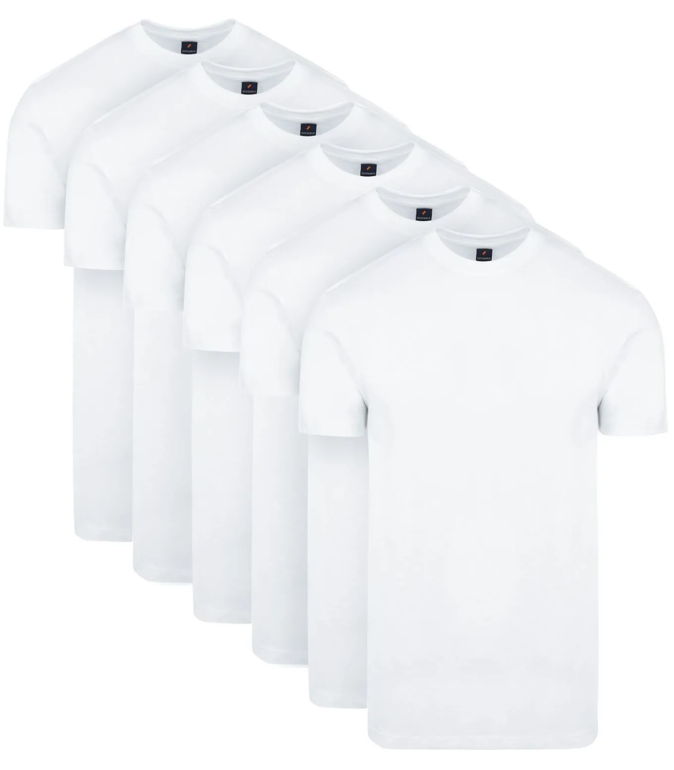 Set van 6 witte, basic T–shirts met hoog gesloten hals. Deze witte Obra T–shirts met hoog gesloten, ronde hals van ons eigen Suitable label zijn de perfecte basis voor jouw garderobe. Draag de herenshirts bijvoorbeeld onder je overhemd of trui voor extra warmte en comfort. Dankzij de brede boord en de ruime pasvorm zitten de basic Obra ondershirts erg lekker en kan je ze dagelijks dragen. Luxe kwaliteit biologisch katoen De shirts zitten verpakt in een voordeelverpakking van 6 stuks en zijn volledig gemaakt van fijn gekamde, biologisch katoen. De shirts zijn gemaakt van 150 grams katoen en zijn bewerkt met een Soft Silk Finish. Hierdoor voelt de stof heerlijk zacht en glad aan. De korte mouwen zijn voorzien van een gezoomde afwerking. De boord heeft een mooie, brede boord van 17mm. 100% biologisch katoen Rechte Regular–Fit pasvorm Bewerkt met een Soft Silk Finish Better Cotton Initiative (BCI) gecertificeerdWasadvies Was de ondershirts altijd voordat je ze de eerste keer draagt. Er kan tijdens deze eerste wasbeurt overtollige vezelstof vrijkomen. Dit is puur residu en zal de kwaliteit van de T–shirts niet aantasten. Was je witte kledingstukken nooit samen met gekleurde kleding. Dit kan zorgen voor verkleuringen. Daarnaast kunnen de witte katoenvezels zich hechten aan gekleurde kleding. Om beschadigingen te voorkomen wordt afgeraden om katoen sneller dan 1400 toeren te laten centrifugeren.