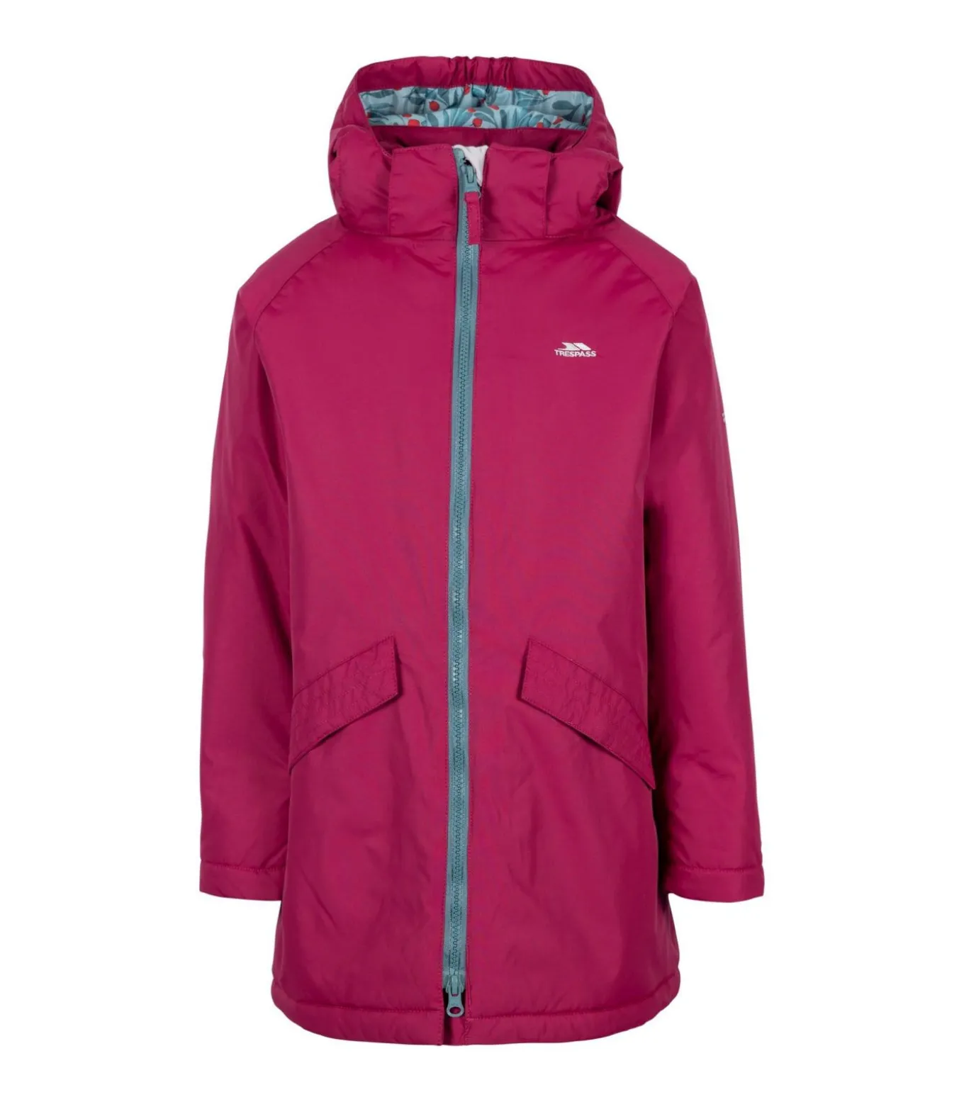Deze jas van Trespass Girls heeft een buitenkant van 100% polyamide met een vulling en voering van 100% polyester. De voering is bedrukt, terwijl de buitenstof polyurethaan gecoat en geweven is. Het heeft logo– en mouwopdrukken en TP50 waterdichte en winddichte stoftechnologie. Het jack heeft een A–lijn vorm met padding en getapete naden. De halslijn heeft een afneembare capuchon en de manchetten zijn met jersey gevoerd. De lange mouwen en rits over de hele lengte zorgen voor volledige bedekking. Er zijn twee zakken met drukknoopsluiting voor opslag. Dit jack heeft een waterdichtheid van 3000 mm, zodat je beschermd bent tegen regen en vocht.
