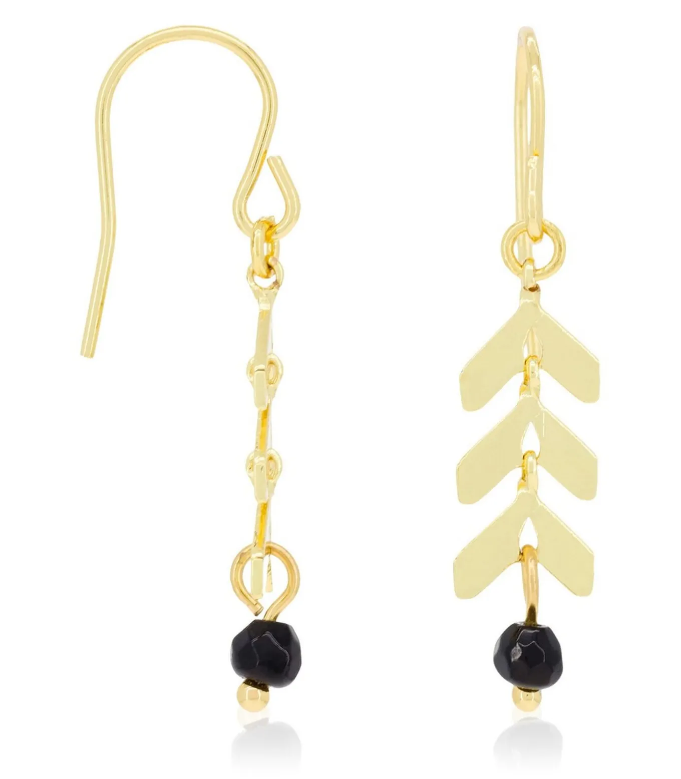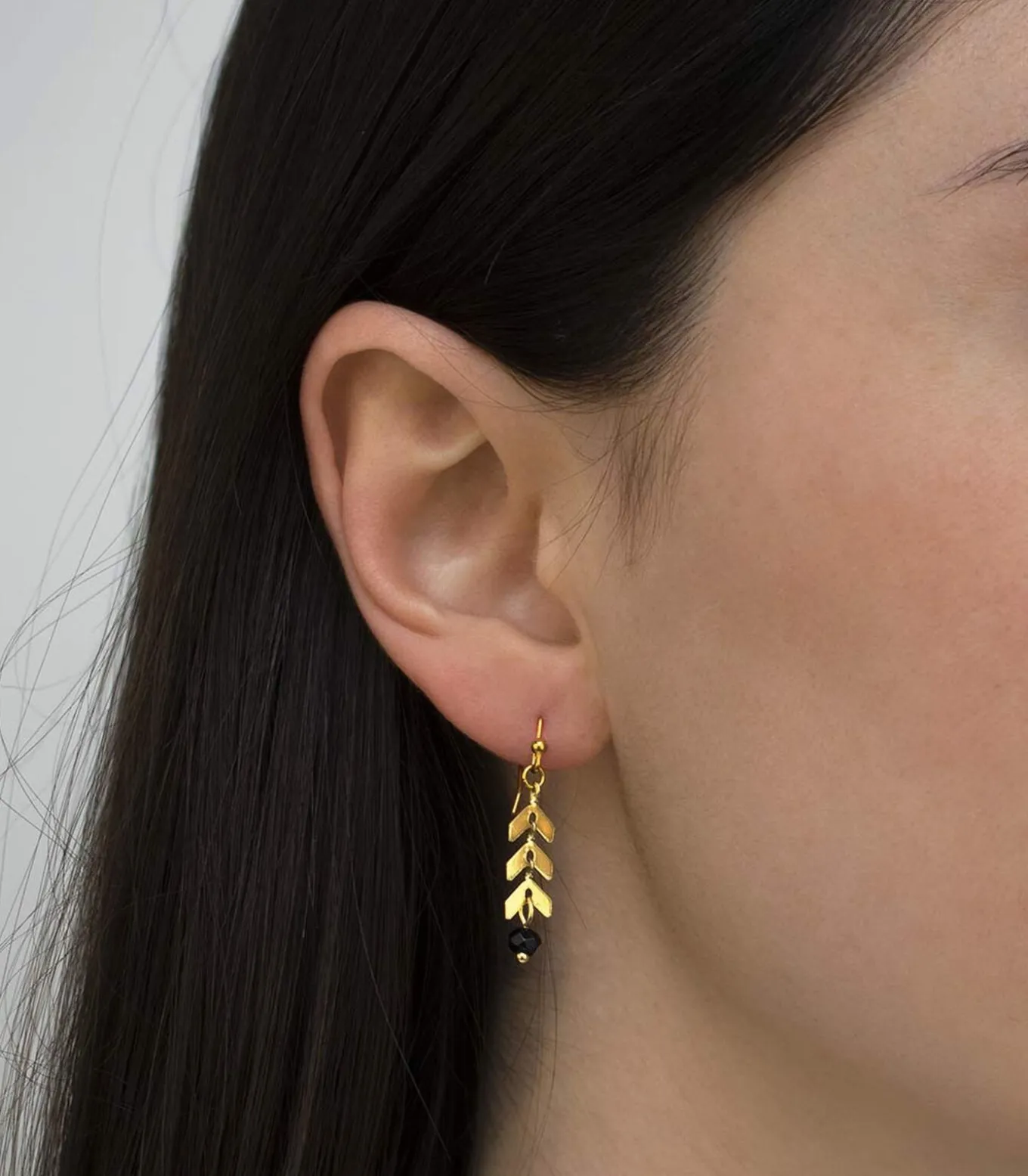 De “Antia” oorbellen van verguld messing zijn een origineel sieraad versierd met zwarte Agathe, een steen die oprechtheid/geloof symboliseert. Het zal de finishing touch geven aan uw bohemian–chique stijl. Dit sieraad wordt geleverd in een etui met een garantiecertificaat van 12 maanden.