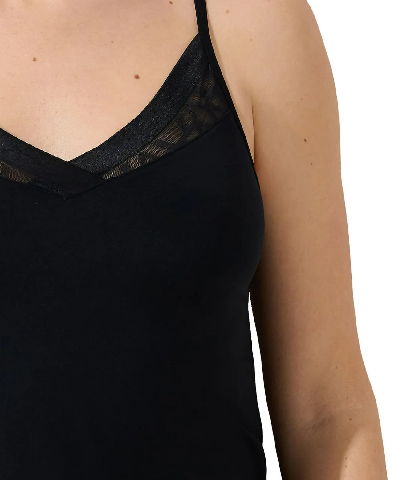 De smalle bandjes zijn verstelbaar voor een perfecte pasvorm. Verfijnd, eigentijds design, esthetische aantrekkingskracht en tijdloze vrouwelijkheid zijn de belangrijkste kenmerken van deze collectie. Zachte elastische banden in een grafisch patroon dat artistiek is ontworpen met behulp van computertechnologie. De combinatie van glad breisel, kanten banden, kanten stof en verborgen tule is gemaakt van pre–consumer gerecycled materiaal (het recyclen van onverkochte vezels, stoffen, garnituren en ‘nieuwe’ kledingstukken aan derden). Deze techniek bespaart water en energie en vermindert de uitstoot van CO2 en COD. De materialen combineren elegantie en precisie, doordat complexe patronen en texturen op verschillende materialen worden overgebracht. De discrete herhaling van het grafische patroon komt bijvoorbeeld ook terug op het kant, de bandjes en de metalen versieringen. Het zijn praktische stukken die dankzij de perfect gevormde randen ook onder nauwsluitende kleding kunnen worden gedragen. Elk lingeriestuk is ontworpen om het vrouwelijke figuur te benadrukken en tegelijkertijd comfort en zelfvertrouwen te geven. Deze lingerie is verkrijgbaar in een verleidelijke poederzwarte kleur of in een elegante beige kleur die discreet past bij de huidskleur en onzichtbaar blijft, zelfs onder een wit overhemd.[Caraco wordt alleen verkocht. Kousen en andere accessoires die het model op de foto’s draagt, zijn niet inbegrepen].