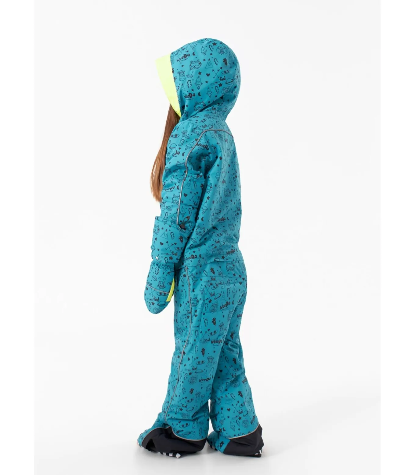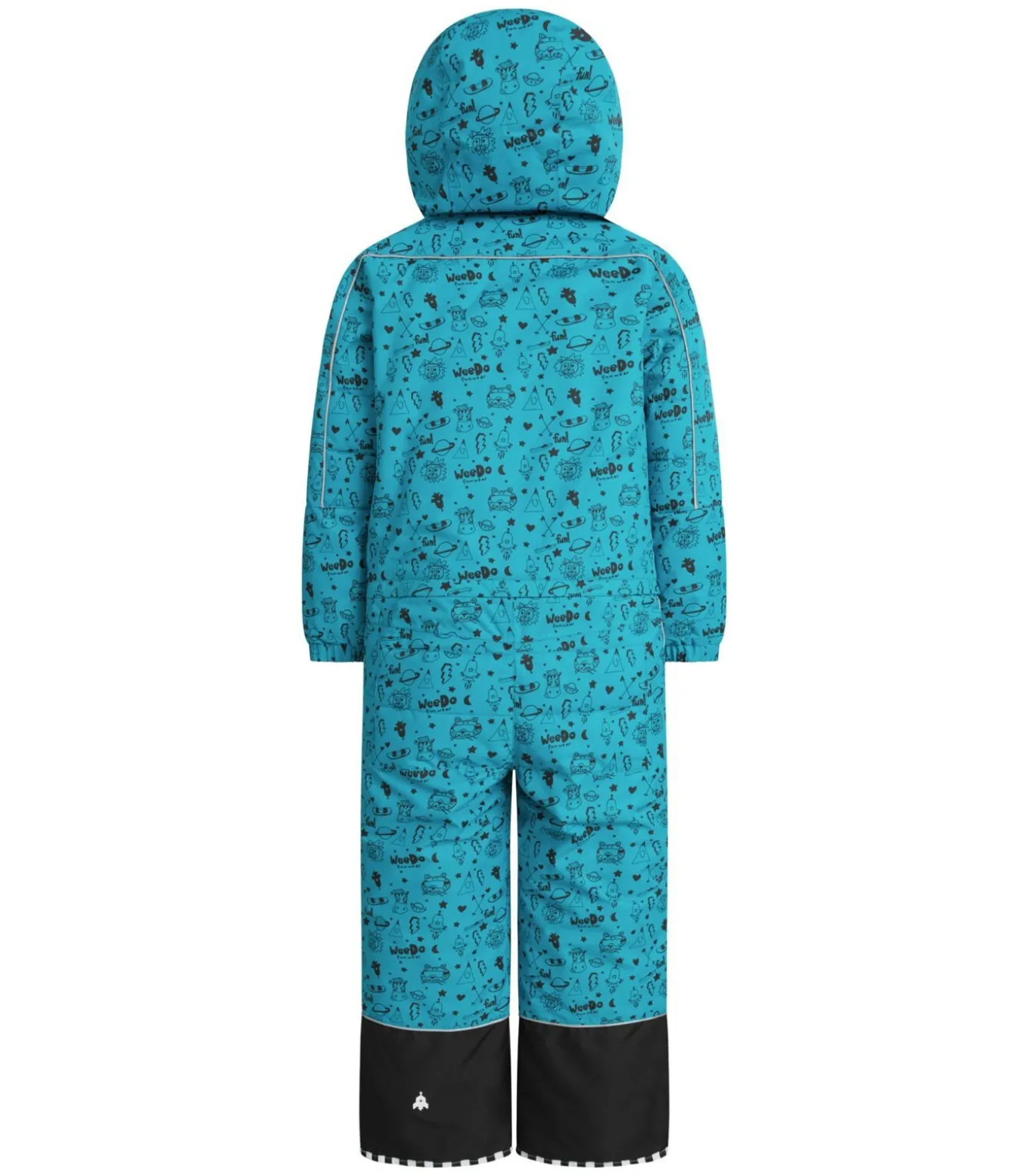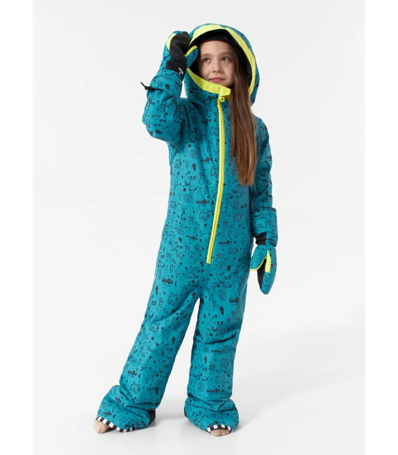 Het kleurrijke sneeuwpak van WeeDo zit vol functies en leuke details. De ski–overall is uitgerust met een groeisysteem en de lengte van de mouwen en benen kan worden aangepast. De pakken bieden veiligheid en bescherming dankzij hyperreflecterende naden en padding. De capuchon is geschikt voor helmen en verstelbaar. Naast een skipaszakje en buitenzakken zorgt een ritssluiting in de taille voor snelle toiletstops.