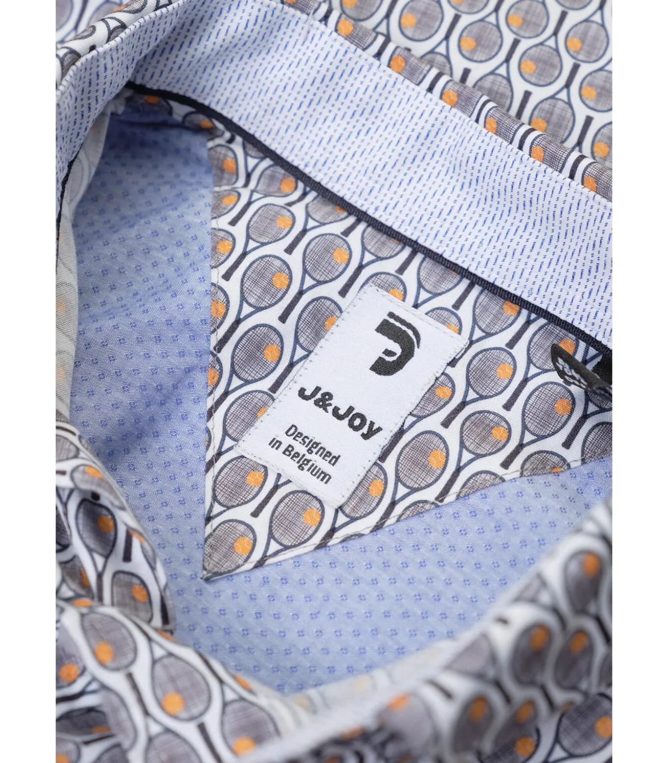 Onberispelijke rechte snit met origineel gedrukt patroon en Tennis Club–themaKlassieke kraag met knooppunten en klassieke knoopsluitingGedrukt patroon aan de binnenkant van de kraag en op de manchetten voor een vleugje originaliteitLange mouwen met afgeronde hoekmanchetten en geborduurd J&JOY–logo op de borstGemaakt van 100% hoogwaardige witte katoen met trekkoord voor optimaal comfort