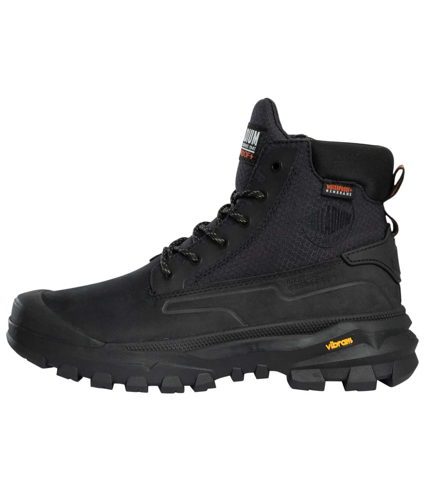 Palladium introduceert de Pallarider SC WP laarzen in het zwart: robuust, waterdicht en gemaakt om lang mee te gaan. Uitgerust met een Vibram–buitenzool voor uitzonderlijke grip en duurzaamheid, garanderen ze stabiliteit onder alle omstandigheden. De gewatteerde boord verbetert het comfort en het waterdichte plus–membraan garandeert droogheid en ademend vermogen. Afgewerkt met het kenmerkende Palladium–merk op de zijkant en tong, belichamen deze laarzen de toewijding van het merk aan robuuste prestaties en een eigentijds design, perfect voor zowel stedelijke als outdooravonturen.