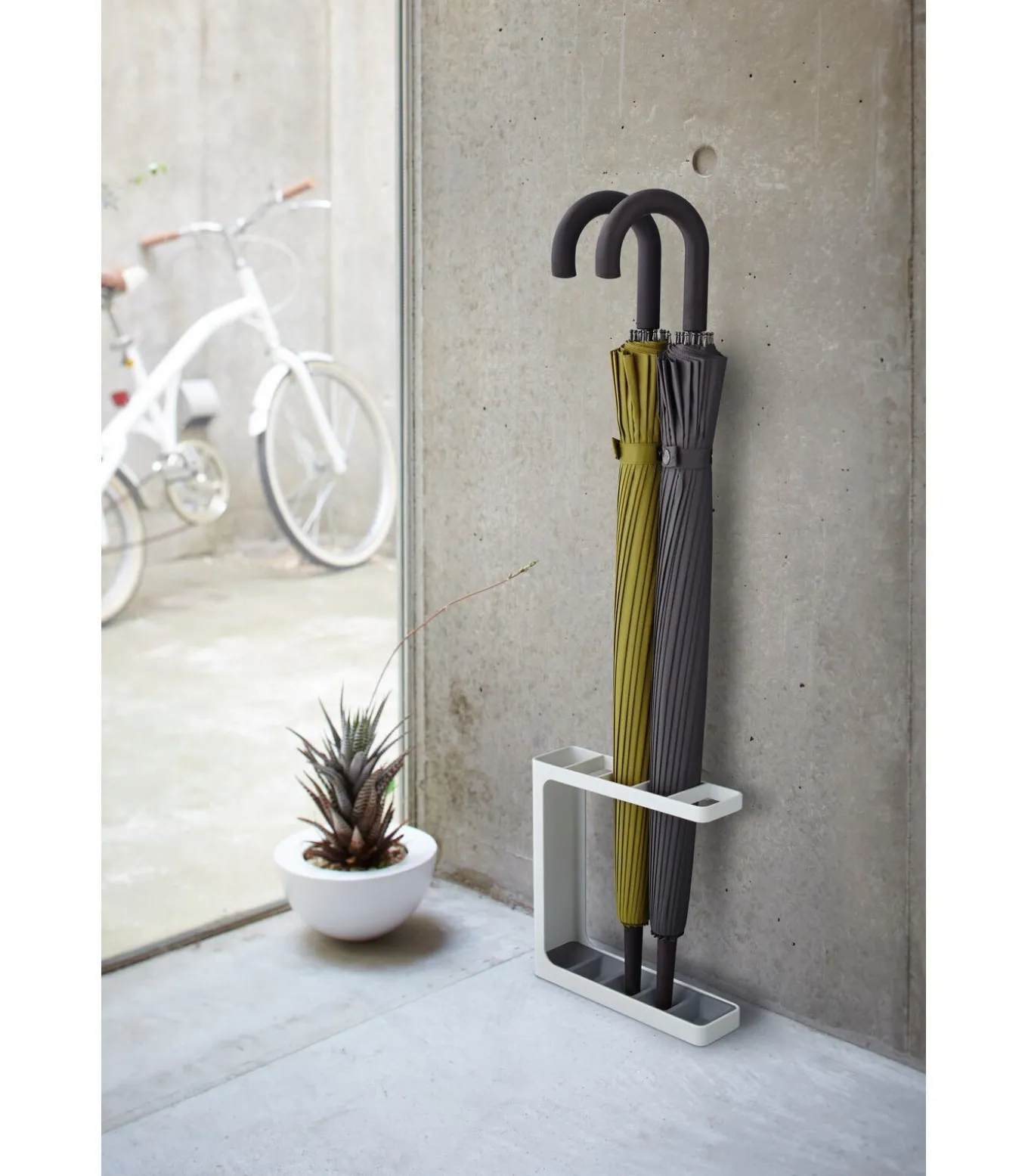 Deze paraplu standaard biedt plaats aan maximaal vijf paraplu’s. Dankzij zijn slanke vorm, past de standaard zelfs in de meest krappe ruimtes. Door zijn simpele en moderne design past de standaard in iedere interieurstijl.