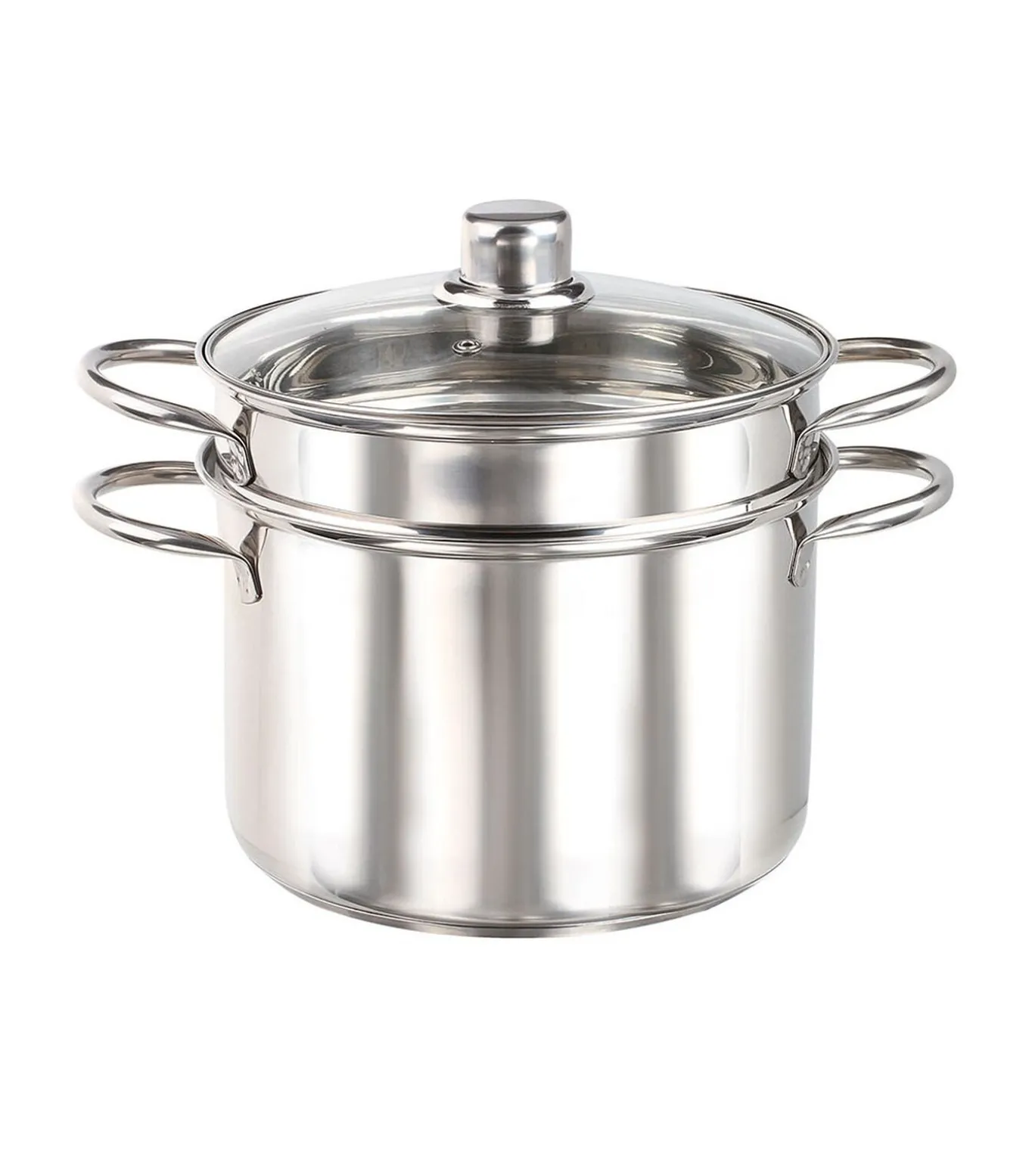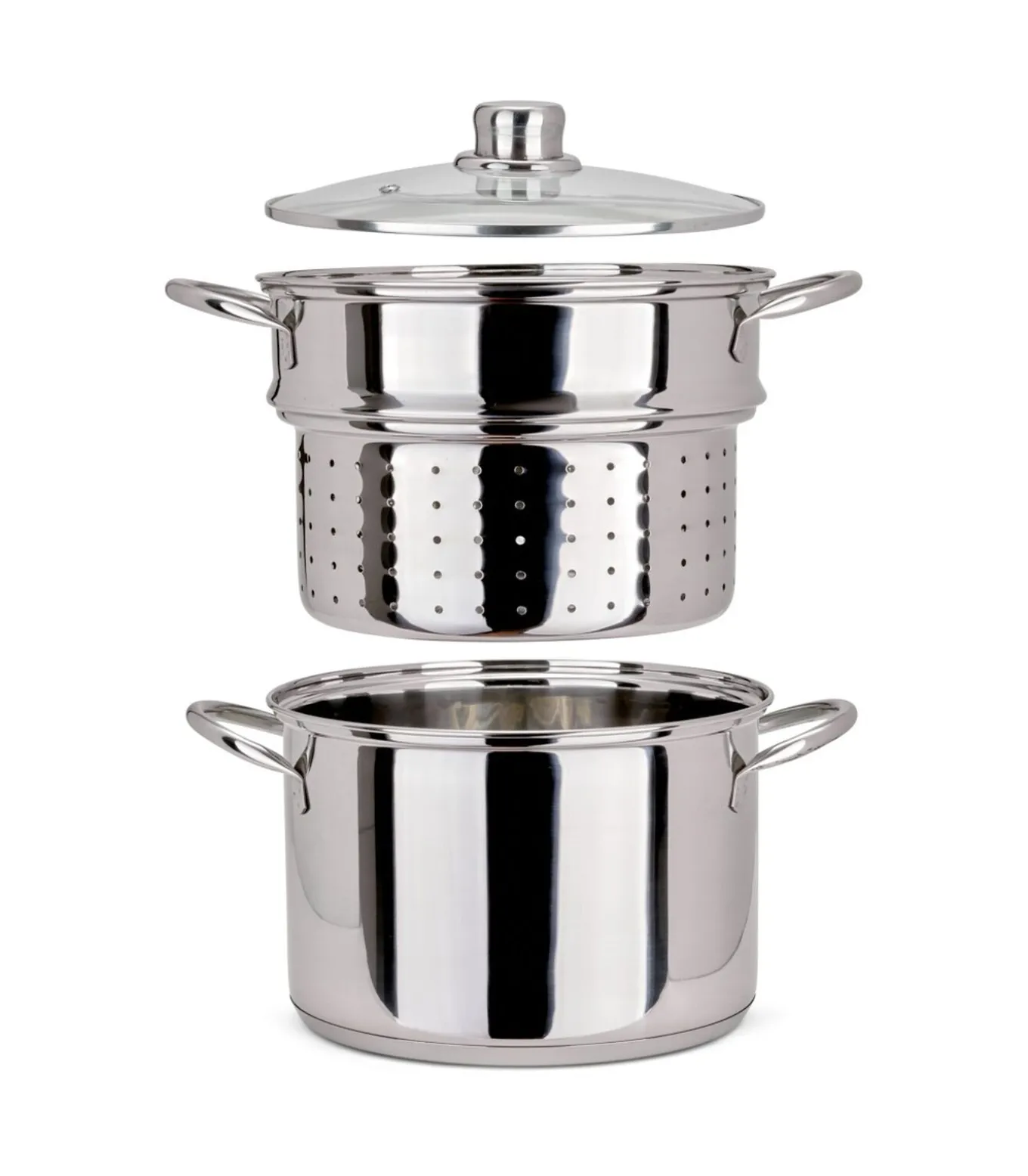 Pastakoker, Roestvrijstaal, Ø 22 cm, Pot 6 L, 1 vergiet en gehard glazen deksel met stoom ontluchting, Geschikt voor alle soorten fornuis met inbegrip van inductie