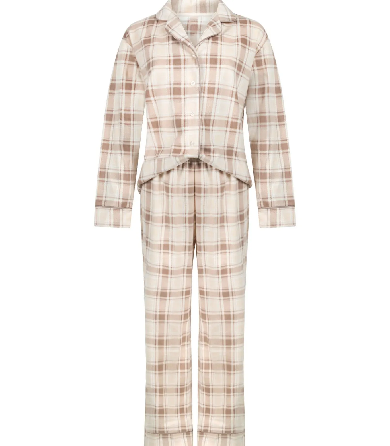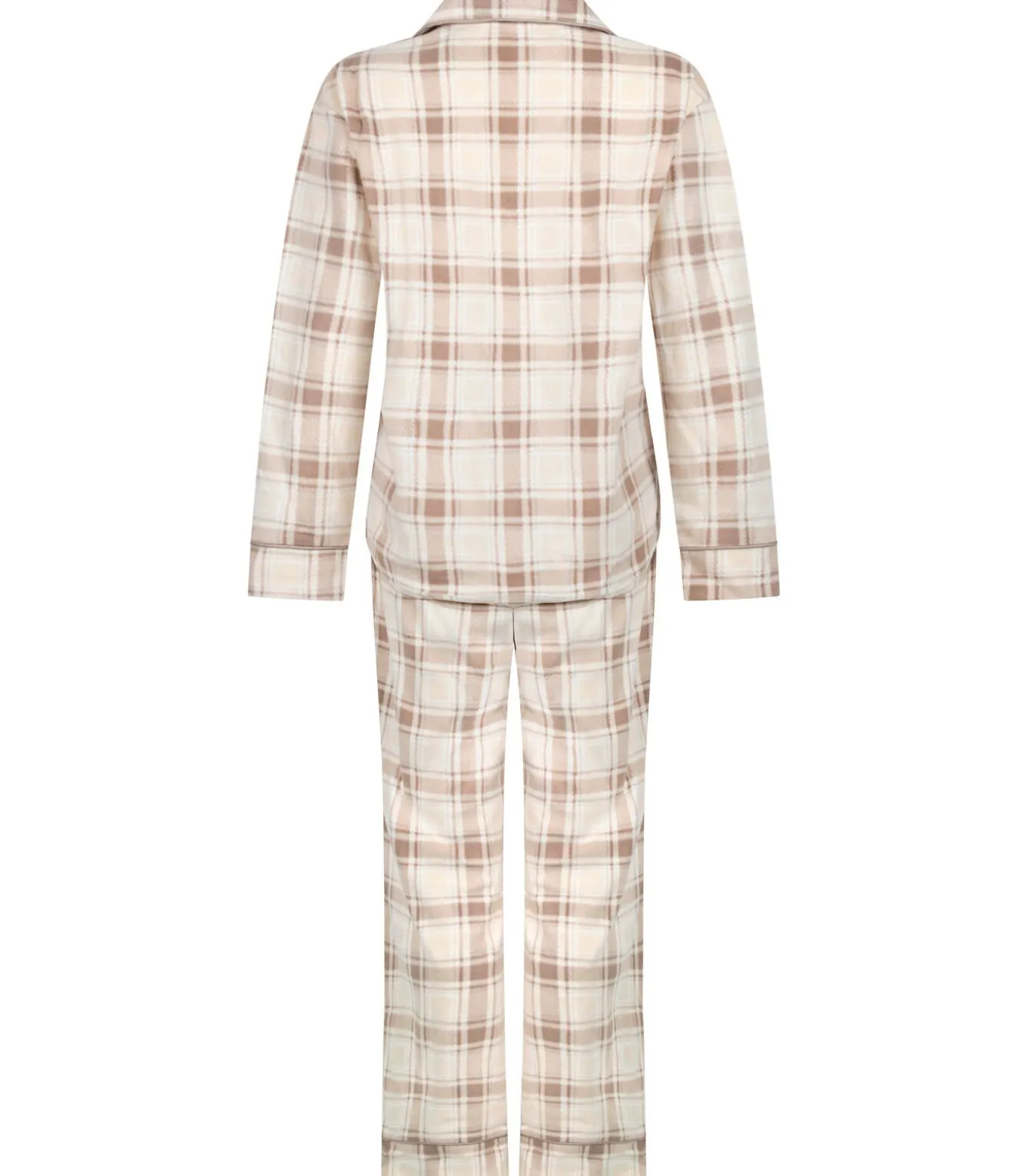 Wikkel jezelf in warmte en zachtheid met deze knusse pyjamaset van polar fleece. Perfect voor koude nachten en luie ochtenden. De zachte fleecestof voelt comfortabel aan en is toch ademend en licht. Deze set bestaat uit een top met een relaxte pasvorm en een bijpassende lange broek. Ideaal voor ultiem comfort tijdens de koudere seizoenen.