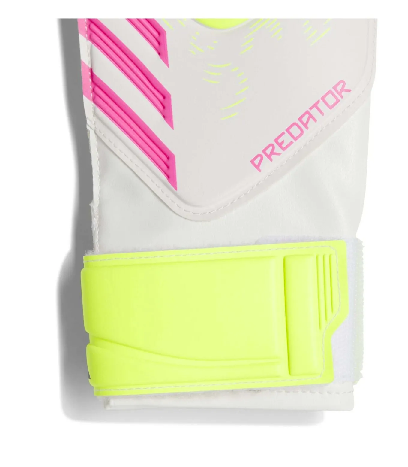 Kleur: Wit / Lucid Lemon / Lucid Pink Samenstelling: Buitenkant: 100% ethyleenvinylacetaat (50% gerecycled), Binnenkant: 100% gerecycled polyester Pasvorm: Positieve snit Sluiting: Halve wikkelband Details: Junior keepershandschoenen, ideaal voor trainingen en het verbeteren van je vaardigheden. De Soft Grip–palm biedt demping en een goede grip, terwijl de comfortabele snit van de vingers en de flexibele handrug comfort en bewegingsvrijheid bieden. De verstelbare bandsluiting zorgt voor stabiliteit en een persoonlijke pasvorm. Gebruik: Ideaal voor jonge keepers tijdens trainingen, om zelfvertrouwen en precisie tussen de palen te ontwikkelen.