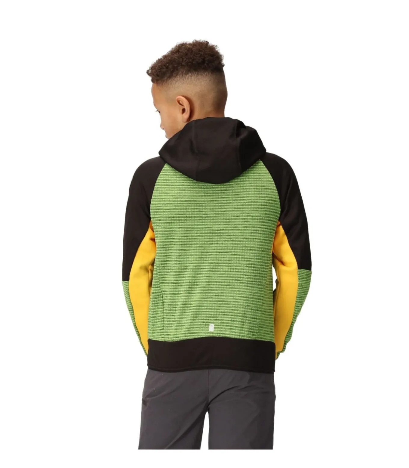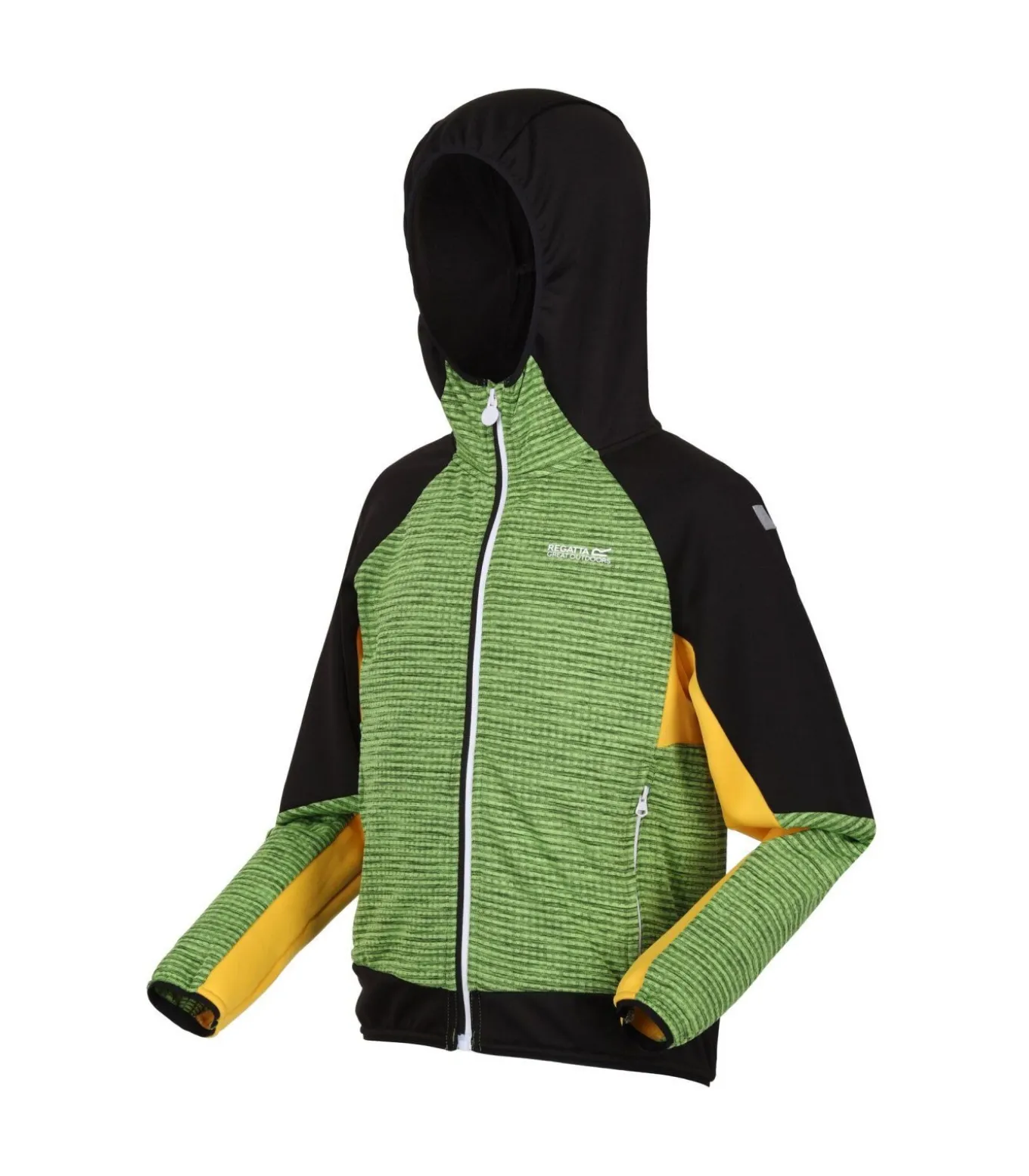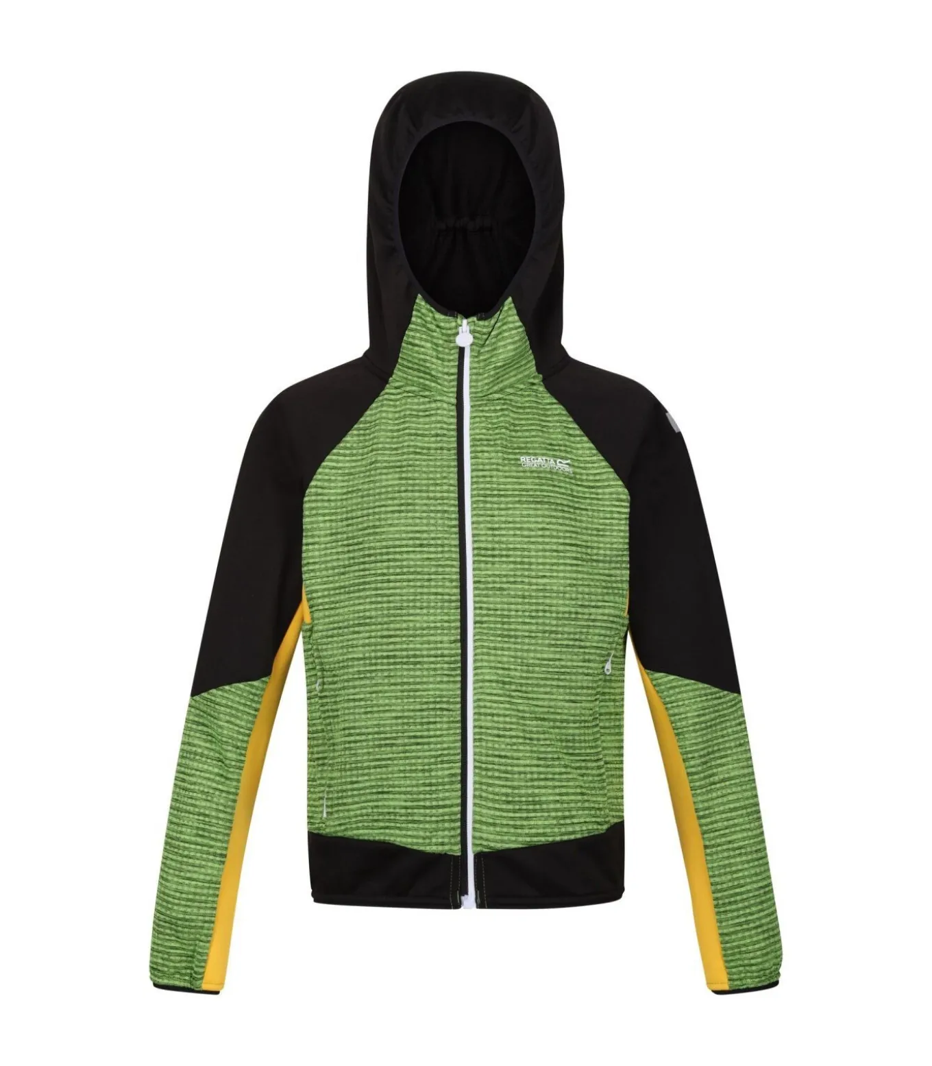Dit softshell jack met capuchon van Regatta Childrens/Kids is ontworpen voor comfort en bescherming. Dit jack is gemaakt van een mix van elastaan en polyester, waaronder het duurzame Extol Stretch softshell–materiaal, en heeft contrasterende microcheck–details en logo–branding. Het softshell materiaal weegt 220 gram en biedt bescherming tegen wind en vocht met behoud van ademend vermogen. Het jack heeft een vastgegroeide capuchon met elastiek en elastische boorden bij de mouwen en zoom voor meer bewegingsvrijheid. Een rits over de hele lengte aan de voorkant met binnenbeschermer zorgt voor sluiting en warmte. Twee zijzakken met rits bieden opbergruimte. Reflecterende afwerking en een gedrukt naamlabel aan de binnenkant verbeteren de veiligheid en organisatie. Deze jas is geproduceerd met milieuvriendelijke en gerecyclede materialen voor duurzaamheid.