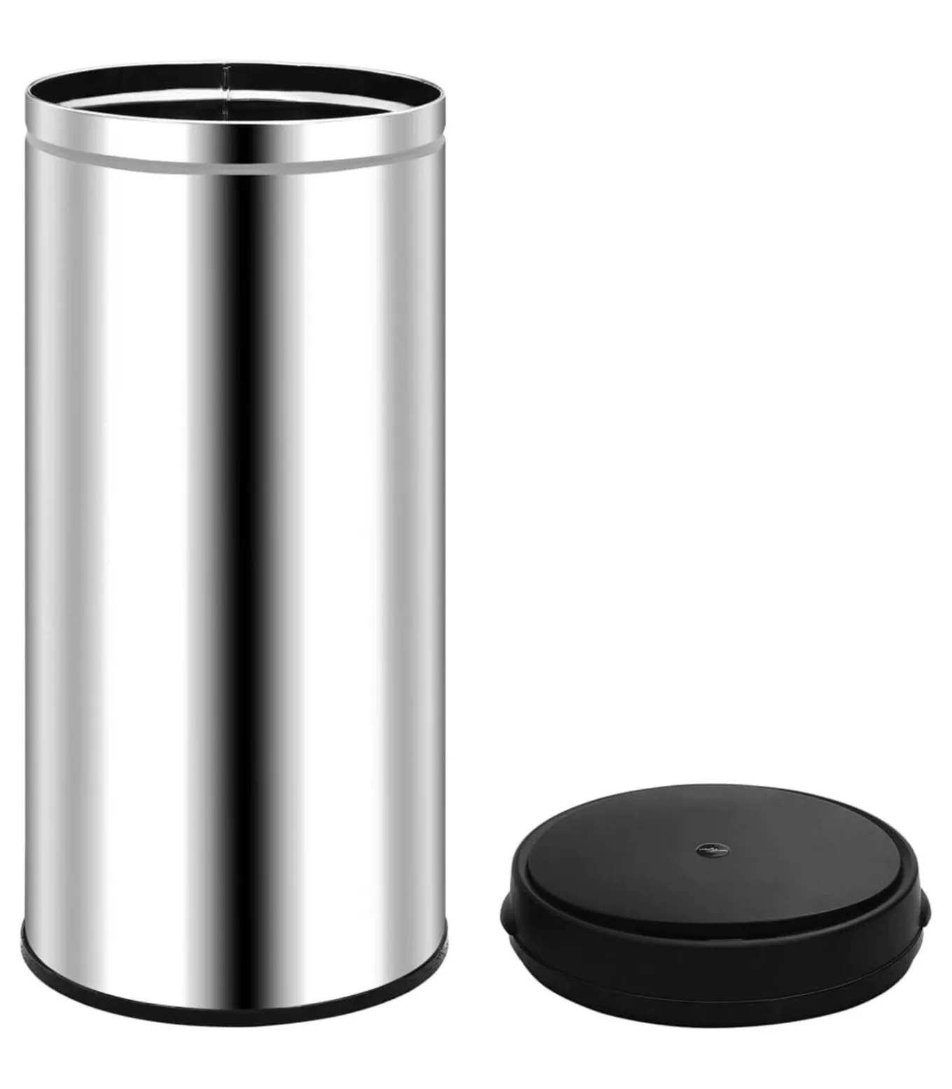 Deze prullenbak heeft een roestvrijstalen behuizing en een sterk ABS deksel, waardoor hij duurzaam en gemakkelijk schoon te maken is. Hij heeft een ring om de zak te bevestigen en het deksel kan eenvoudig worden afgenomen. Je kan de sensor uitschakelen om het deksel handmatig te openen en sluiten.