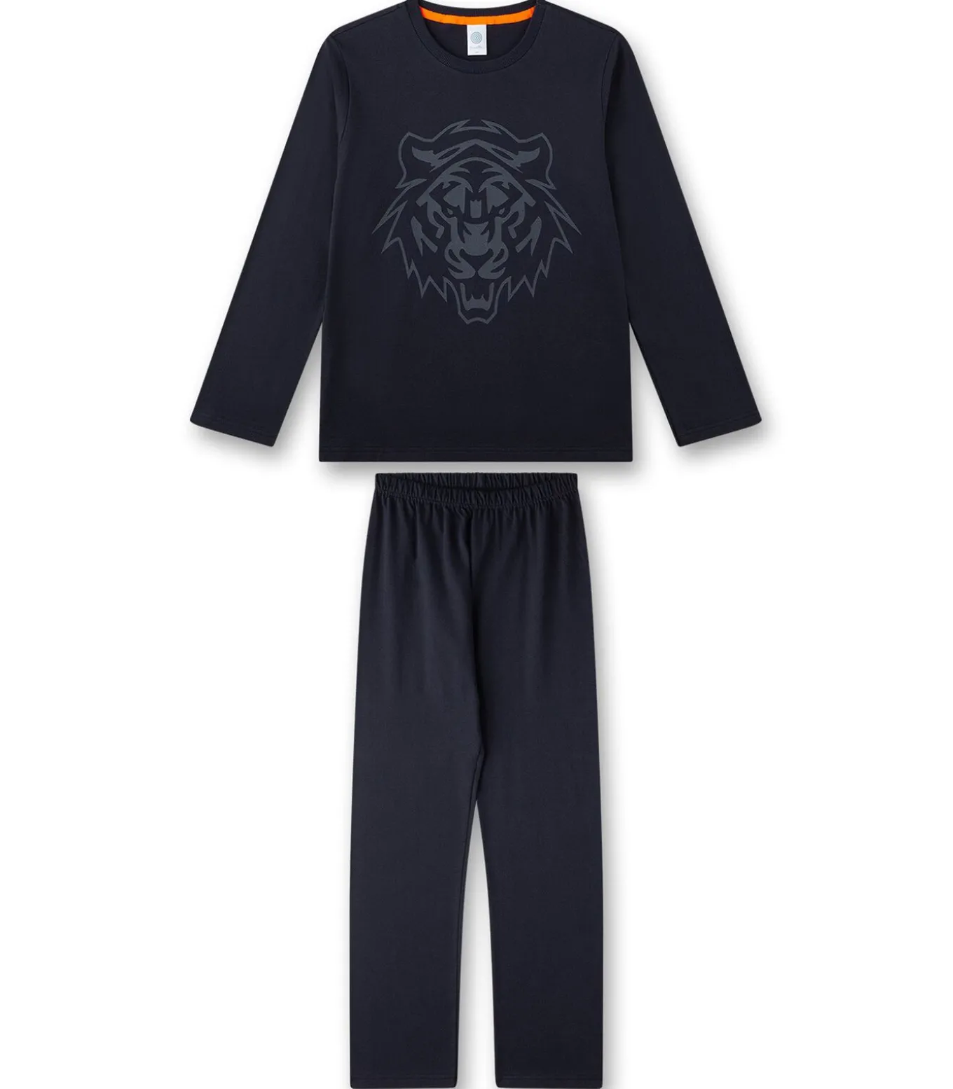 Lange pyjama voor jongens van het merk Sanetta. Shirt met lange mouwen, een groot motief op de voorkant en een ronde hals. Effen, lange pyjamabroek.