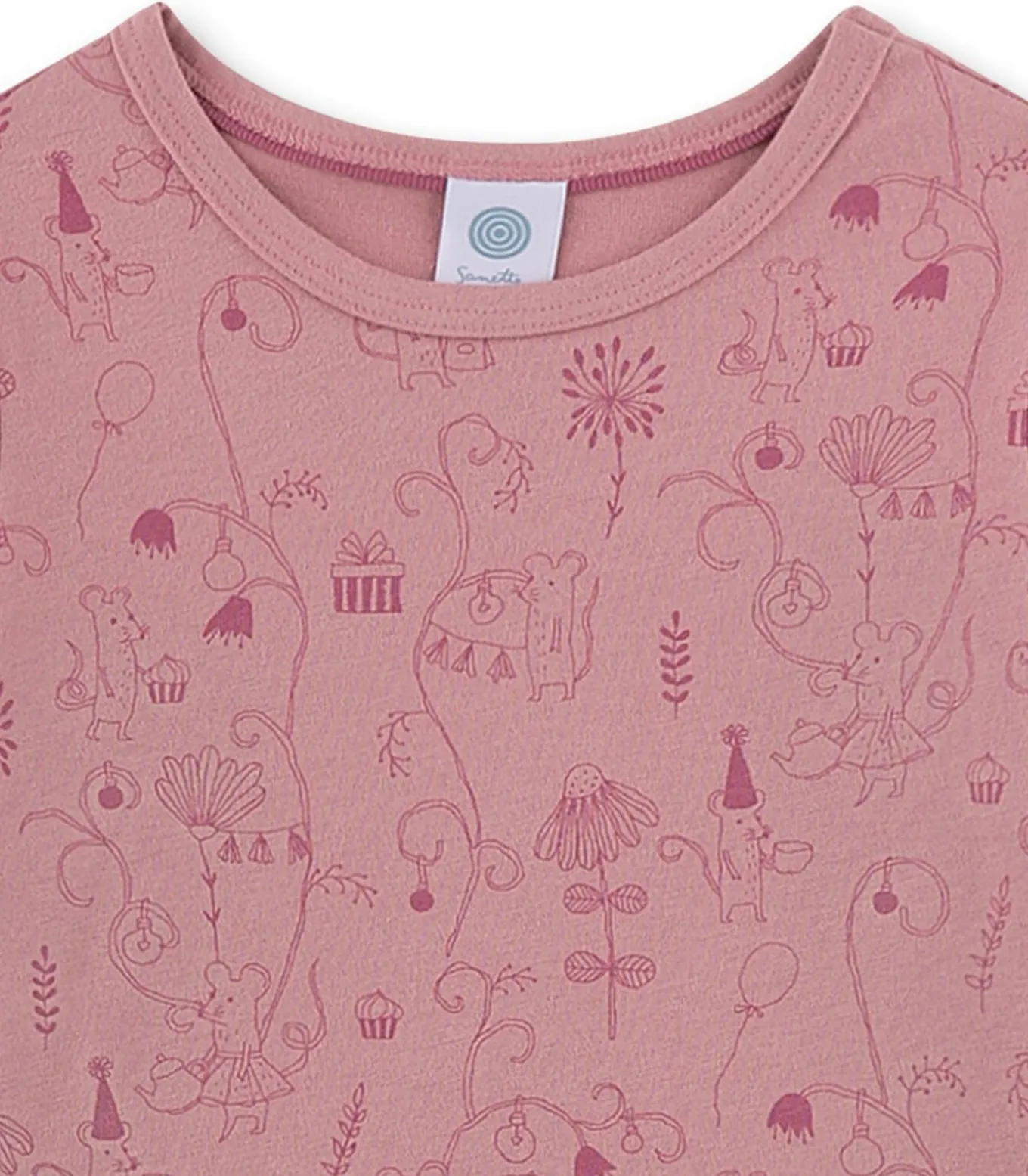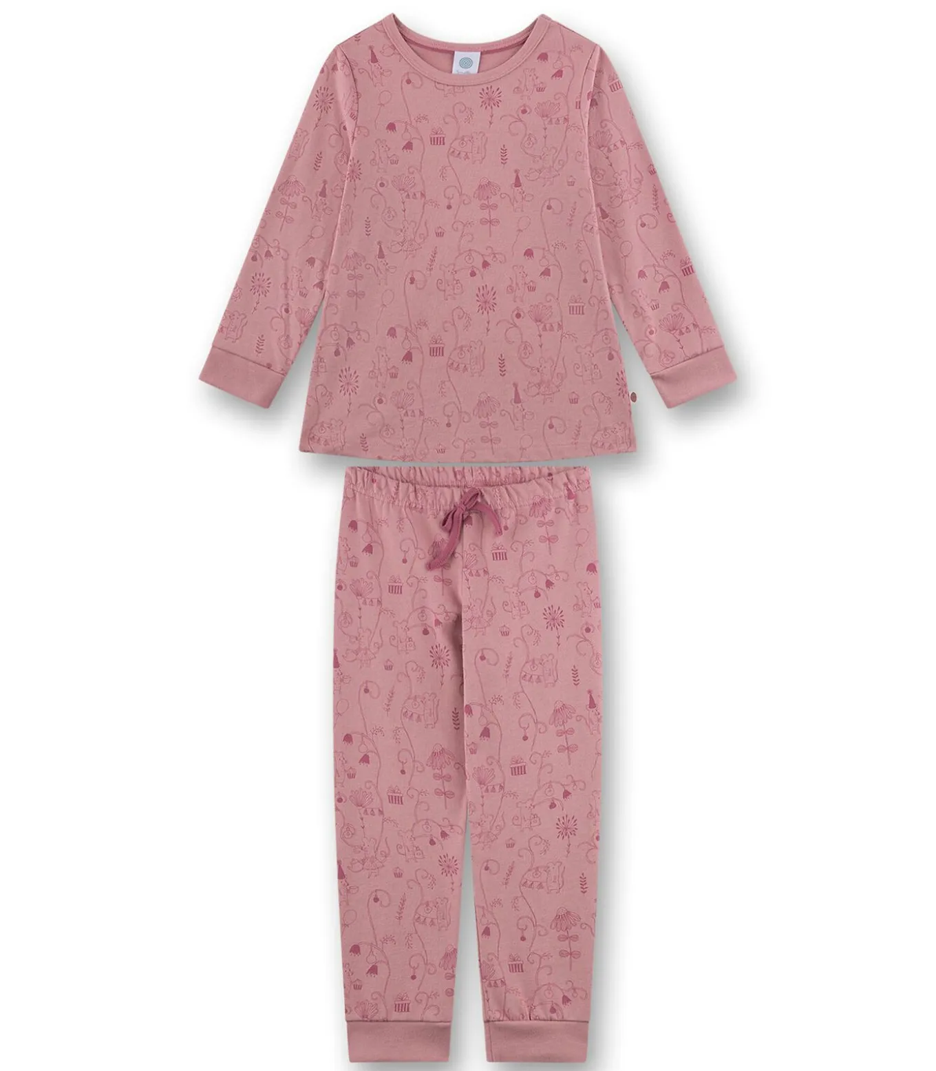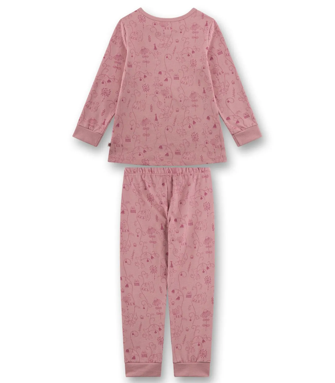 Sanetta pyjama voor meisjes. Lange pyjama met all–over print van velours. Shirt met lange mouwen en ronde hals. Comfortabele broek met boorden.