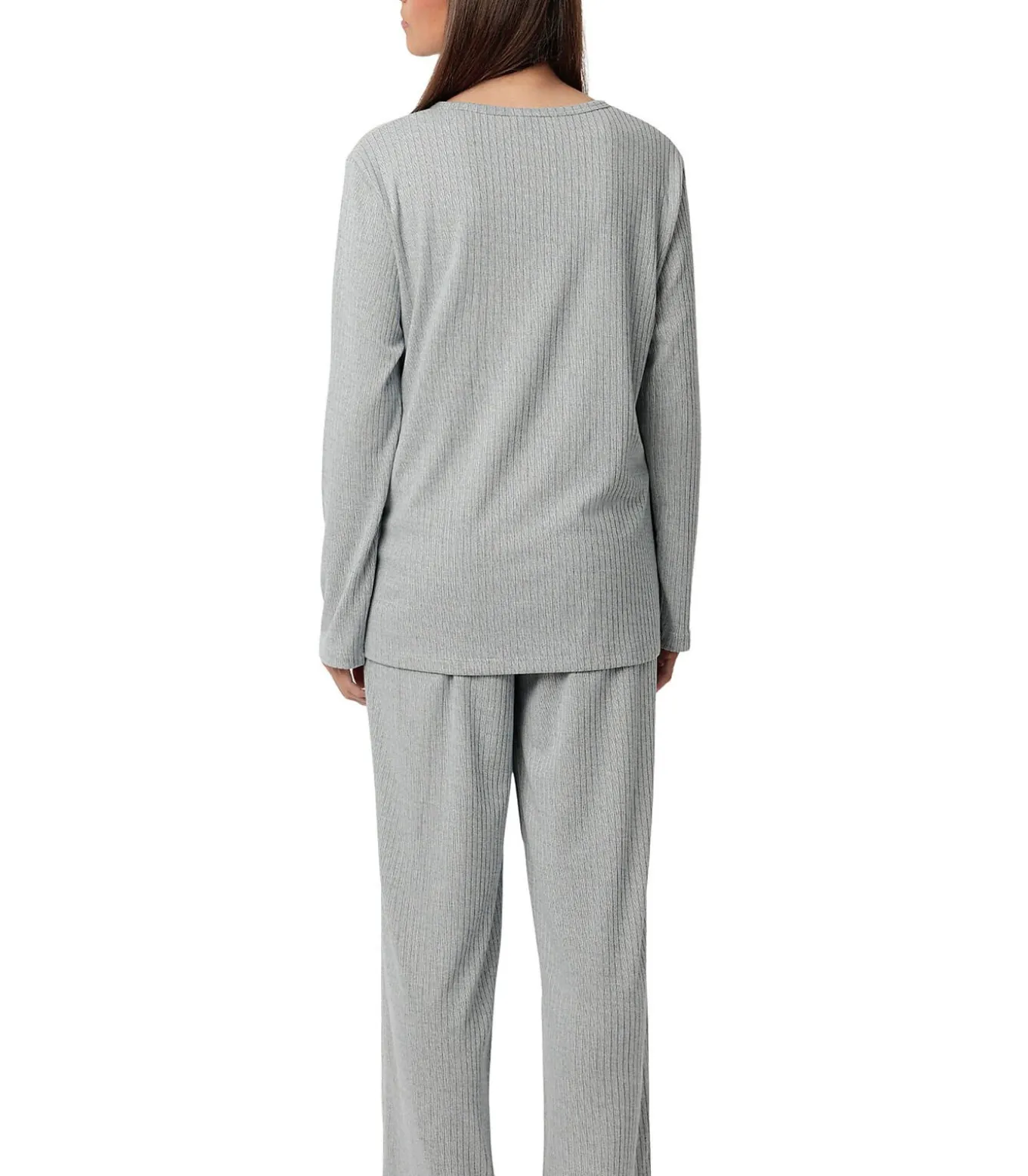 Pyjama’s in een stijl van comfort en elegante eenvoud. De ultrazachte stof is gestructureerd in fijne ribbels, licht en soepel, voelt prettig aan en ademt. De top is een T–shirt met lange mouwen, een licht ronde hals en een knoopsluiting met vier knopen voor een vleugje stijl en functionaliteit. Klein logo in reliëf op de buste. De bijpassende broek is recht en licht uitlopend aan de onderkant, voor een casual maar elegante look. Deze pyjama heeft een minimalistische, moderne stijl, ontworpen om comfort en zachtheid in huis te brengen en tegelijkertijd stijlvol en verfijnd te blijven. Geleverd in een Admas doos.