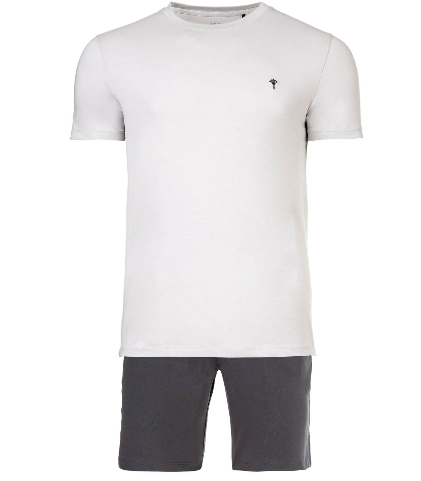 Casual JOOP! pyjamaset bestaande uit een effen T–shirt en korte broek. Logoprint op top en short met ronde hals. Biologisch katoen met stretchgehalte.
