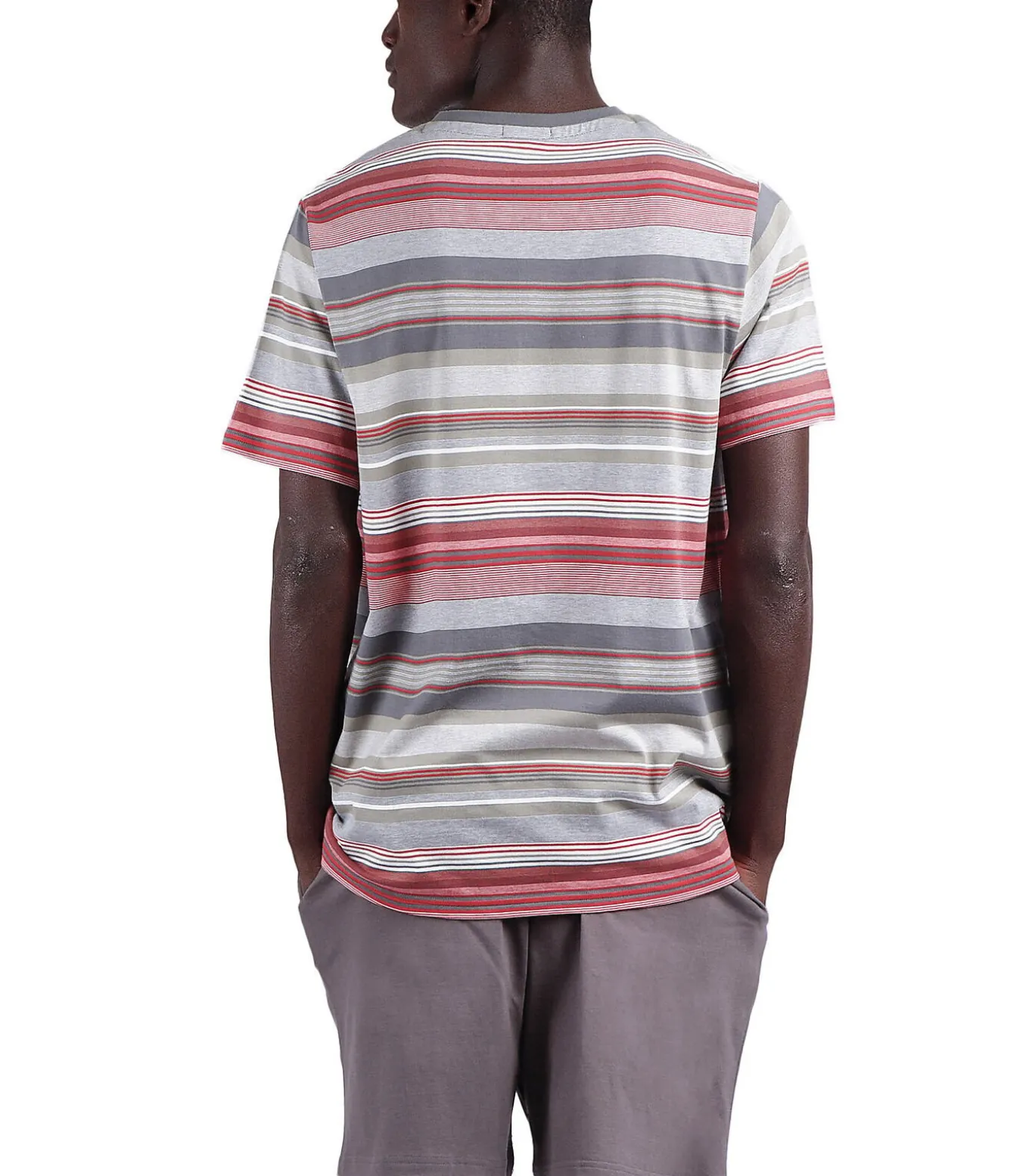 Pyjamaset geheel gemaakt van lichtgewicht, comfortabel katoen, ideaal om te dragen als loungewear of als pyjama voor je lente– en zomeravonden. Het bestaat uit een effen grijze short met praktische zijzakken, en een T–shirt met slipe mouwen, ronde hals met knoopsluiting, gestreept met gekleurde geweven strepen. Klein Antonio Miro detail geborduurd op de buste. De stof voelt zacht aan en is aangenaam op de huid. Antonio Miro collectie box set.