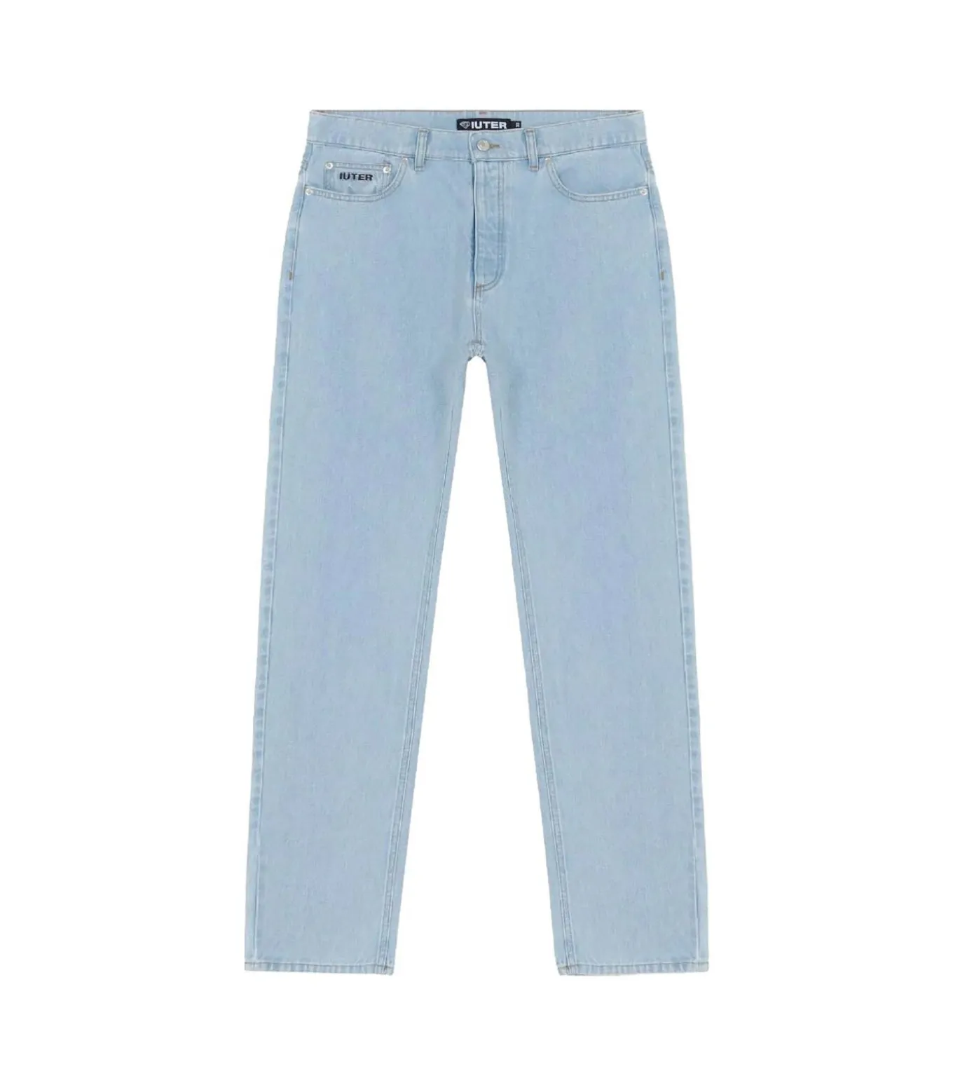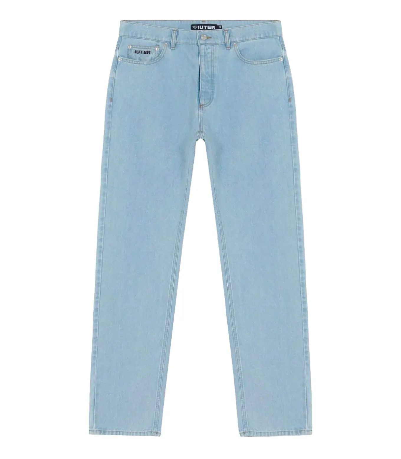 Kleur: Lichtblauw Taille: Medium Details: Vijf zakken met klein logo op de voor– en achterkant genaaid Sluiting: Knoop in de taille Lengte: Lang Pasvorm: Normaal Gelegenheid: Vrije tijd