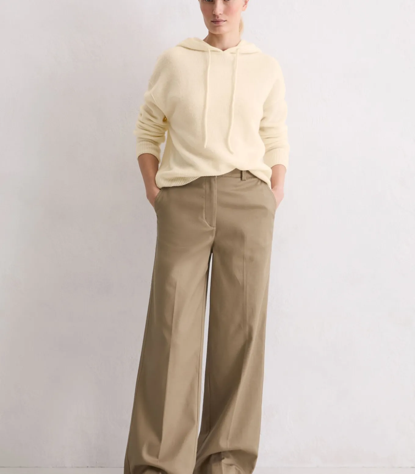 Er zijn modeklassiekers waar we elk seizoen weer verliefd op worden. Dit zijn bijvoorbeeld een wit T–shirt, sportschoenen, een leren jack, jeans en een hoodie. Over het algemeen houden we van kleding die je meer dan één of twee jaar kunt dragen. Ons casual model straalt een moderne, tijdloze casual charme uit. Het maakt indruk met zijn casual ontwerp en hoogwaardige garenkeuze. Het is gebreid van een hoogwaardige, pluizige lamswolmix, heeft een grote capuchon met trekkoord, een verlaagde Franse schouder en klassieke geribde boorden.