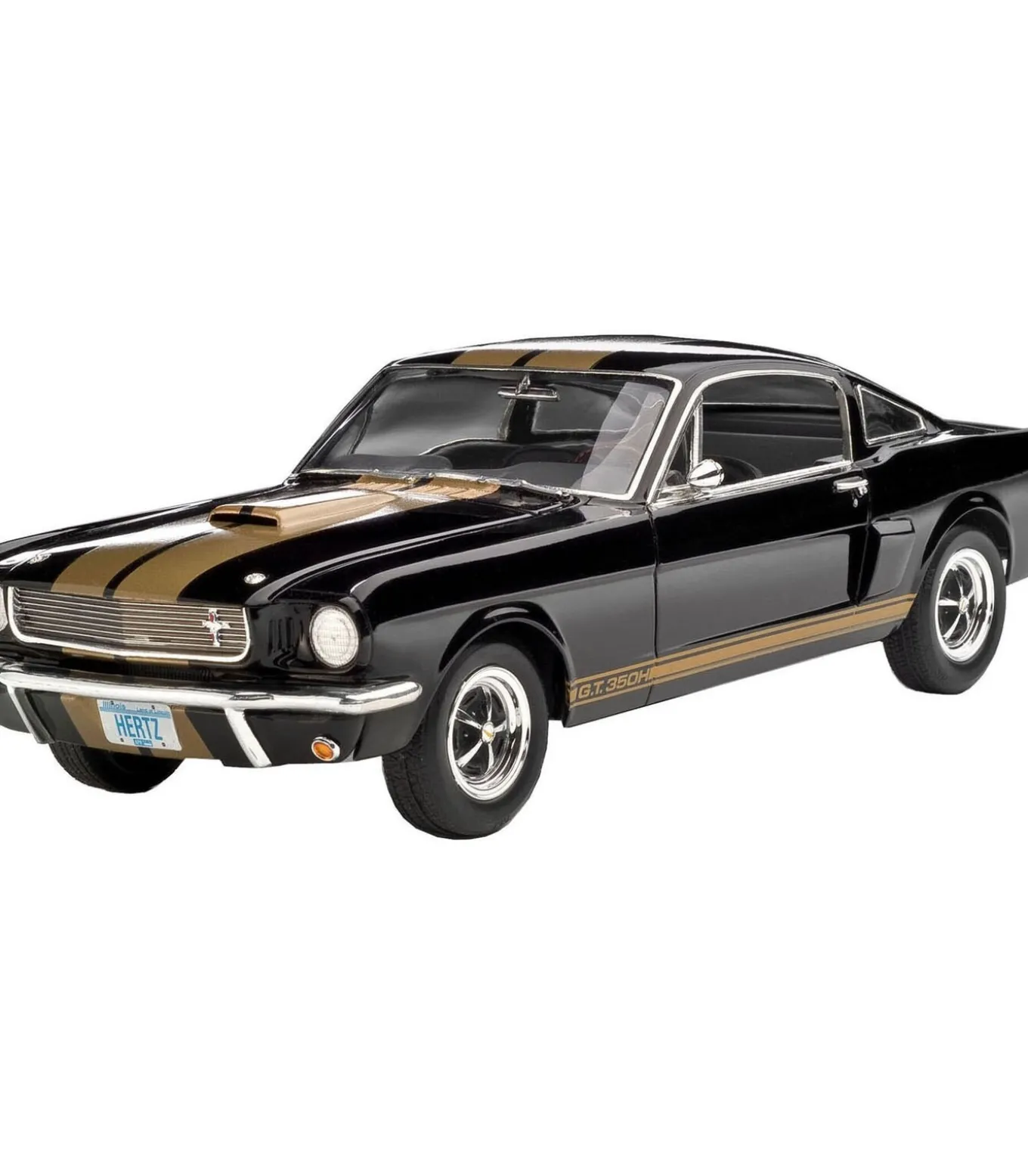 Revell Shelby Mustang GT350H modelbouwauto 1:24 schaal kunststofMet deze Shelby Mustang GT350H modelbouwauto van Revell bouw je zelf een legendarische Amerikaanse ‘pony car’ in schaal 1:24. Het key word Mustang GT350H brengt direct de sfeer van snelheid en kracht in huis! Dit bouwpakket is perfect voor liefhebbers van klassieke auto’s en modelbouwers die houden van precisie en detail.De set bevat maar liefst 86 onderdelen, waaronder een beweegbare motorkap, een gedetailleerde V8–motor, een apart uitlaatsysteem en een interieur met authentiek instrumentenpaneel en kuipstoelen. Dankzij de chromen details zoals velgen, schokdempers en grille ziet jouw miniatuurauto er extra stoer uit. De iconische zwarte lak met gouden strepen maakt het plaatje helemaal af. Verf en lijm zijn niet inbegrepen, dus vergeet deze niet mee te bestellen!Extra informatieSchaal 1:24, lengte model 19,1 cmBeweegbare motorkap en gedetailleerde motorVeel chromen onderdelen voor een realistische lookExclusief verf en lijm geleverd