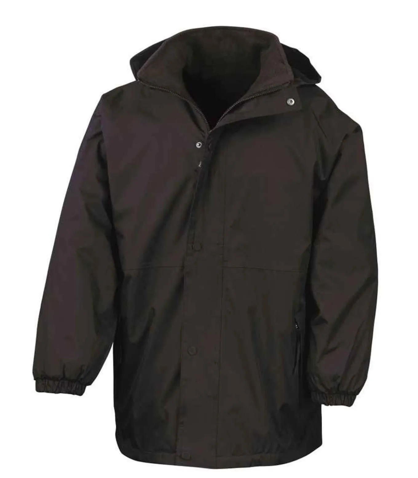 Resultaat, OMKEERBAAR – Jasje – Donkerblauw, gemaakt van 100% Polyester. Deze jas heeft een vulling van Fleece en is met een laag bedekt PVC. Het ontwerp is eenvoudig. Met een dikte van 200gsm en verschillende technologische eigenschappen, zoals anti–Pilling, ademend, tochtwerend, PFC–afwerking, PFOA–vrij, StormDri 4000, waterdicht en winddicht. De jas is dubbel gestikt, heeft een ophanglus, reflecterende details, kan omgedraaid worden, heeft tapete naden en een afscheurbaar label. De manchetten zijn elastisch. De halslijn is kapitein–type. Het jasje heeft lange mouwen die ingezet zijn. De capuchon van het jasje is verborgen met een trekkoord. De jas heeft vier zijzakken, en wordt gesloten met volle ritsen, een stormflap en studs. De waterdichtheid bedraagt 4000mm. Het kan gebruikt worden voor decoratie, borduurwerk, drukwerk en overdrachtdruk. De jas is milieuvriendelijk, gemaakt van gerecycled materiaal, en heeft een Oeko–Tex Standard 100 certificaat. De maten zijn: S (38 in.), M (41 in.), L (44 in.), XL (47 in.), XXL (50 in.) en 3XL (53 in.).