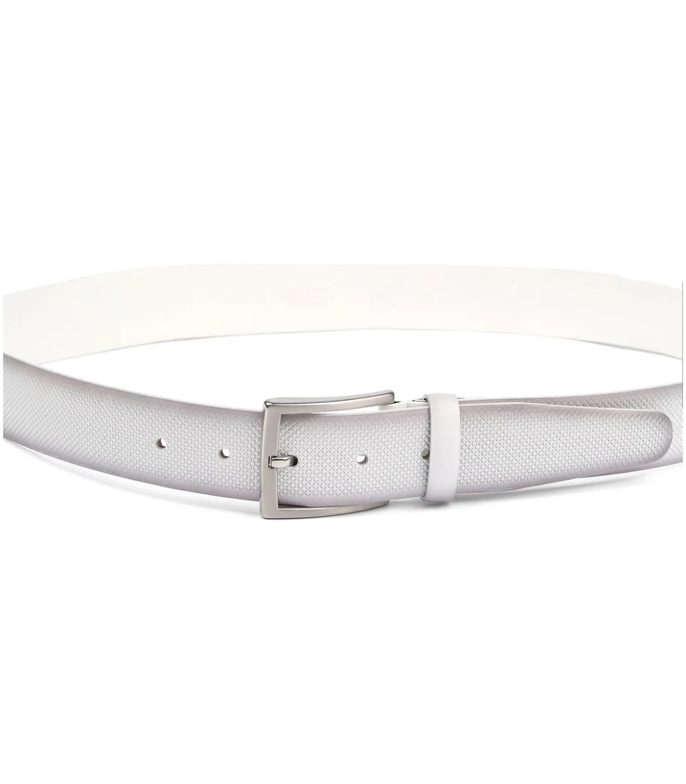 Je outfit is pas echt compleet met deze lederen riem van Suitable. De herenriem heeft een witte kleur in een structuur en is voorzien van een zilverkleurige gesp. Draag de riem bij je favoriete jeans, chino of pantalon. Wit gekleurdGemaakt van leer3,5 centimeter breed