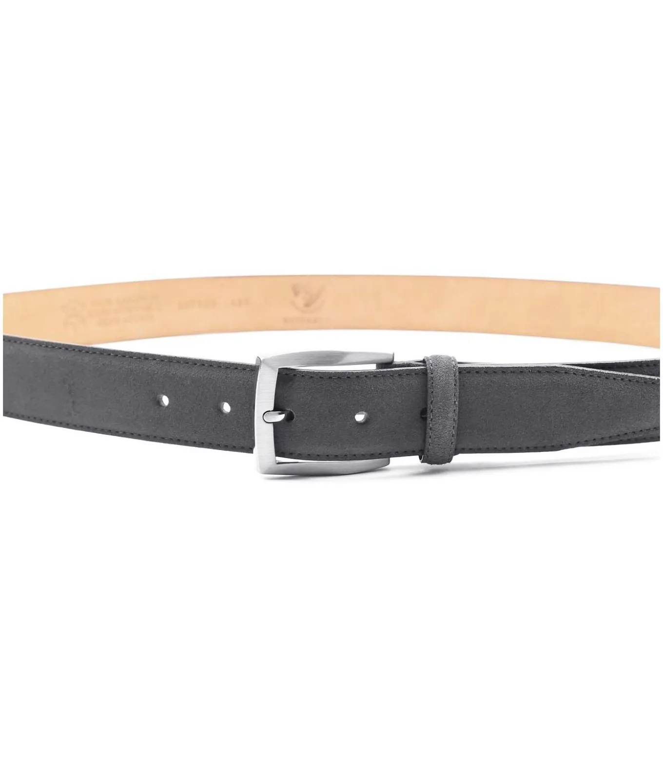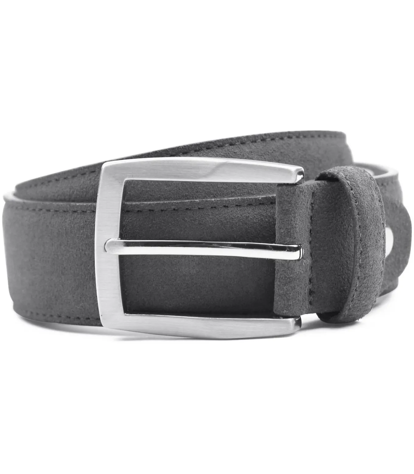 Je outfit is pas echt compleet met deze lederen riem van Suitable. De herenriem heeft een blauwe kleur in een suede en is voorzien van een zilverkleurige gesp. Draag de riem bij je favoriete jeans, een chino of een pantalon. Grijs gekleurdGemaakt van leer4 centimeter breed