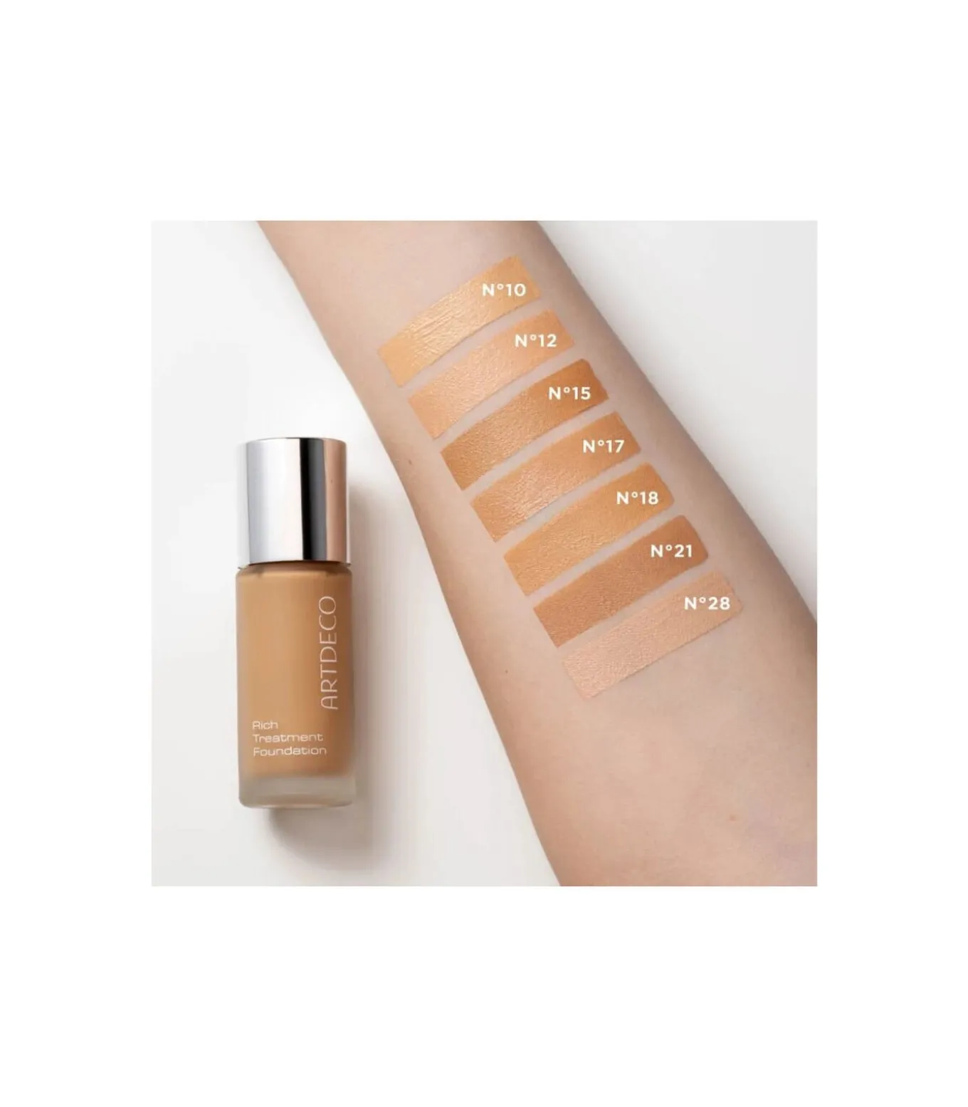 Verwen jezelf met het gevoel van een vlekkeloze huid met Artdeco Rich Treatment Foundation in de kleur 21 Delicious Cinnamon. Deze luxueuze crèmefoundation is ontworpen om imperfecties te verbergen en een stralende teint te creëren. De romige, watervaste formule zorgt voor een uitstekende dekking gedurende de dag. Lichtreflecterende pigmenten camoufleren fijne lijntjes, rimpels en vlekken, terwijl squalaan de huid zichtbaar gladder maakt. Bovendien beschermen UV–filters in de formule de huid tegen milieuschade, voor extra zekerheid. Met Artdeco Rich Treatment Foundation krijg je een langdurige, egale, fluweelzachte afwerking voor een huid die straalt van gezondheid en schoonheid. Ontdek een nieuwe manier om je teint te verbeteren en je de hele dag door stralend te voelen. Je verdient een huid die perfectie uitstraalt, daarom heeft Artdeco deze foundation gecreëerd met de beste ingrediënten. Squalaan, aanwezig in de formule, laat de huid comfortabel en glad aanvoelen, voor een zachte en zijdeachtige touch. Bovendien bieden UV–filters essentiële bescherming tegen schadelijke zonnestralen en andere milieufactoren. Met Artdeco Rich Treatment Foundation kun je er zeker van zijn dat je huid in goede handen is, profiterend van zowel zorg als stralende schoonheid.