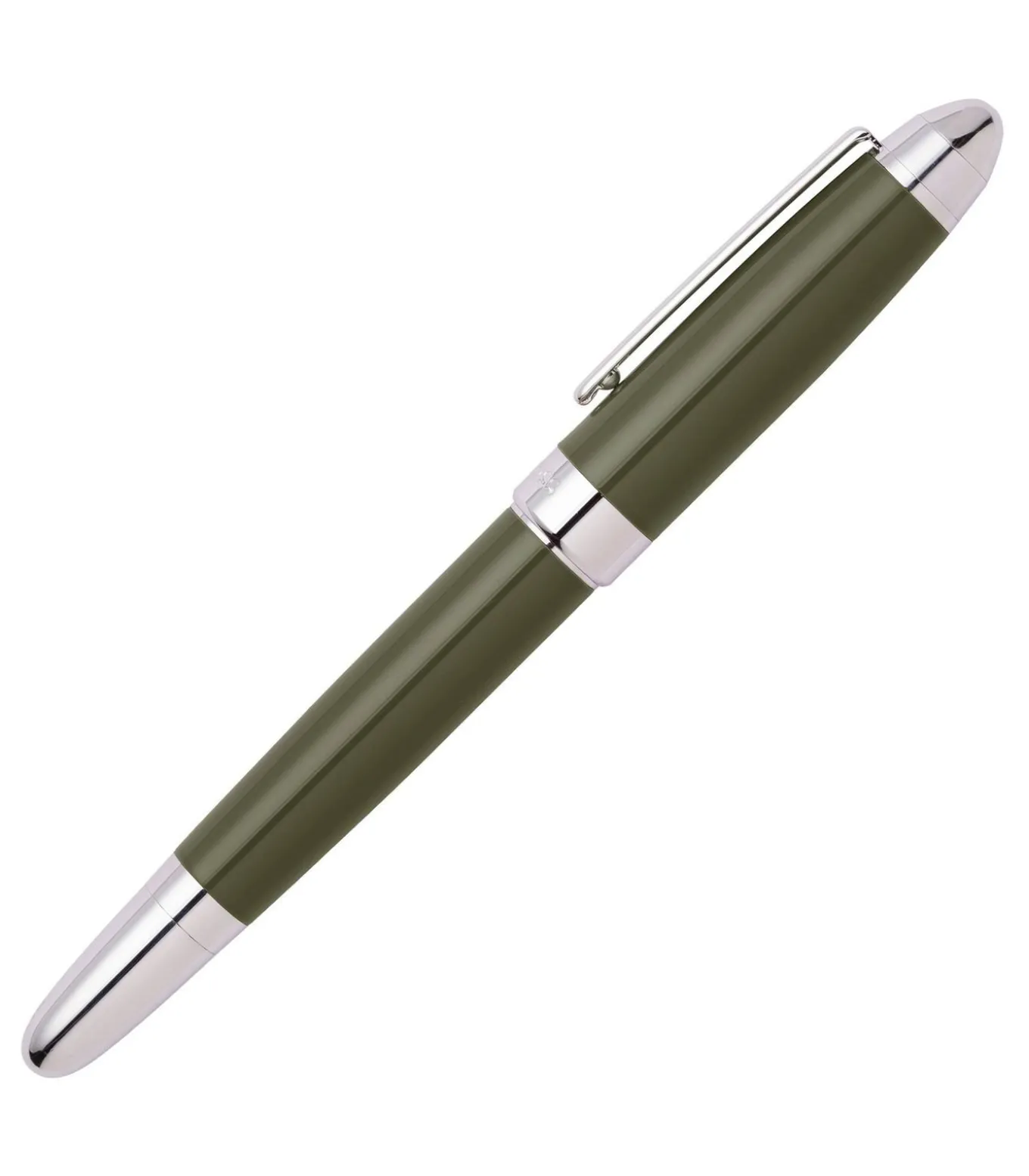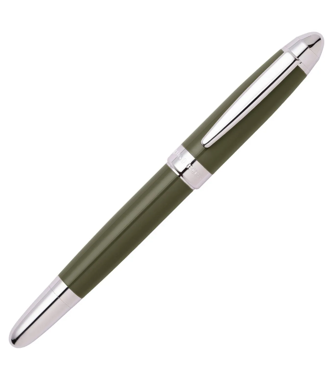 Elevate your writing experience with the Rollerball Pen Icon Kaki/Gun by HUGO BOSS. This sleek and stylish pen combines a luxurious dark green and black design with premium brass and gun plating for a sophisticated touch. Weighing just 46 grams and measuring 138 mm in height, it fits comfortably in hand, making every writing session a pleasure. Its smooth blue ink glides effortlessly on paper, ensuring your thoughts flow seamlessly. Perfect for both men and women, the Icon Kaki/Gun is not just a pen; it’s a statement of elegance. Experience the art of writing with HUGO BOSS. Dimensions: DIA.12/H.138 mm, Material: Brass,Lacquer,Gun plating,Black chrome