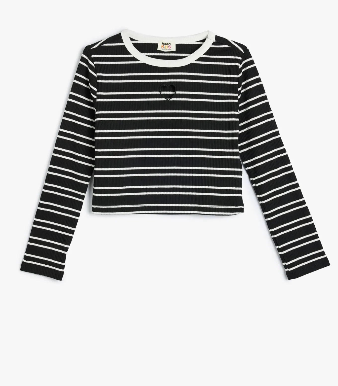 Venster gedetailleerd uitgesneden Strak zonder zak Crop lengte Lange mouw Ronde kraag Tshirt