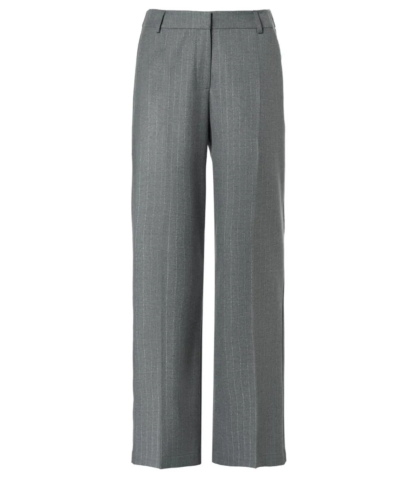 De grijze Rosely pantalon met elegante zilveren krijtstrepen is een stijlvolle upgrade van een klassiek model. Deze broek uit de collectie van Mart Visser straalt luxe uit en biedt tegelijkertijd een comfortabele, moderne pasvorm. De rechte pijpen en de getailleerde snit bij de heupen zorgen voor een flatterend silhouet dat geschikt is voor elke gelegenheid, van zakelijke meetings tot feestelijke diners. Voorzien van schuine steekzakken aan de voorkant en paspelzakken achter, is de broek zowel praktisch als verfijnd afgewerkt. Dankzij de glanzende krijtstreep en de neutrale grijstint is de Rosely gemakkelijk te combineren met diverse texturen en kleuren, zoals een elegante blouse, zachte knitwear of een casual T–shirt. Samen met de Roseline of Zaylee blazer vormt deze pantalon een stijlvolle en krachtige combinatie. Of je de broek als co–ord draagt of solo, met de Rosely zit je altijd goed.