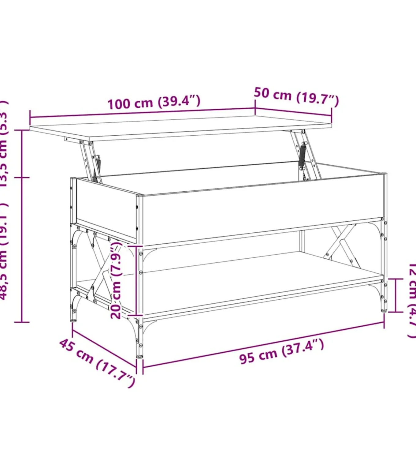 Voldoende opbergruimte: de woonkamertafel heeft onder het blad een verborgen vak, zodat je je vaak gebruikte spullen kunt opbergen en beschermen tegen stof.