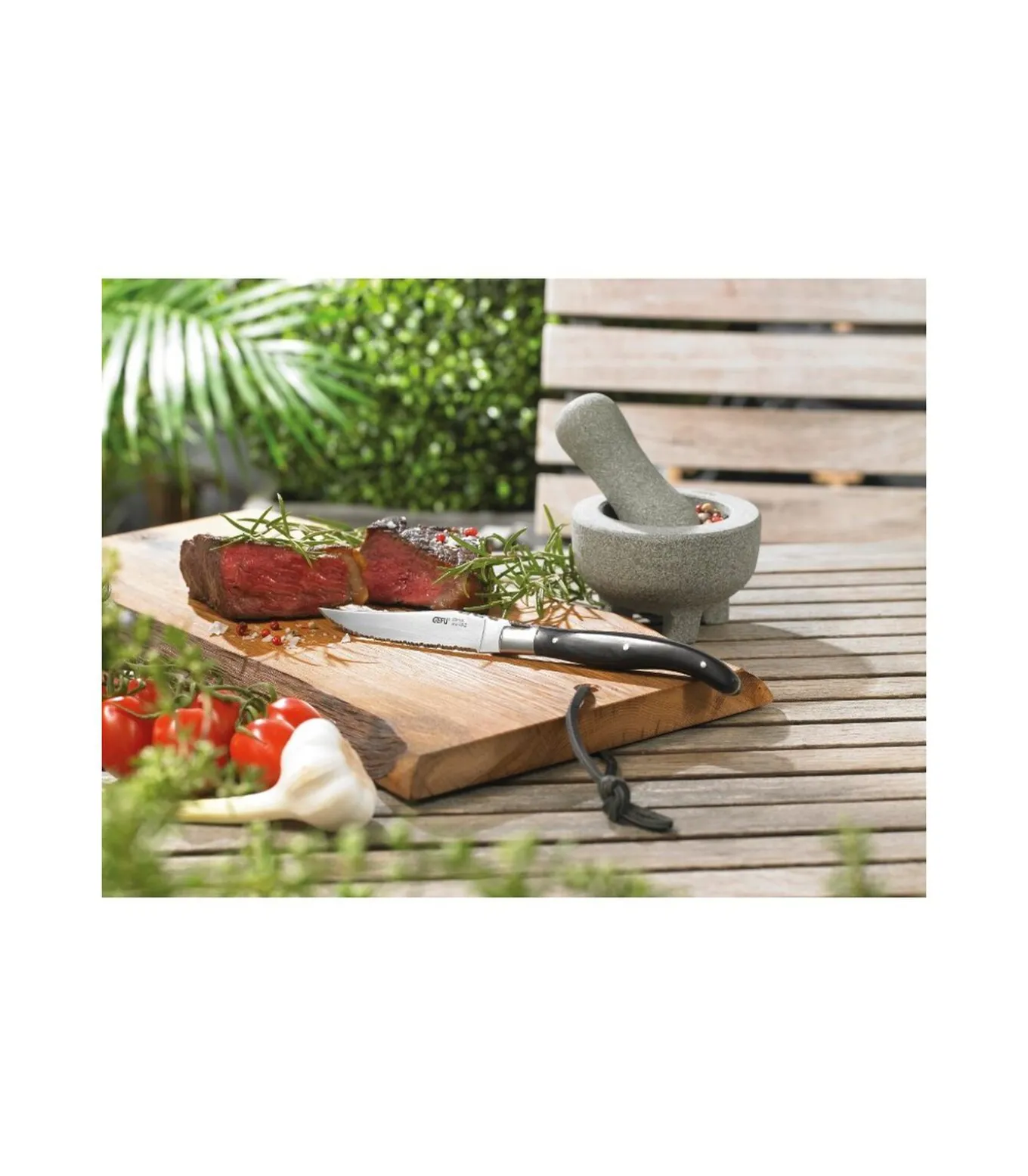 • 4 steakmessen in een hoogwaardige box van grenenhout • ultrascherpe gladde lemmeten• ergonomische gevormde handgrepen van hout met roestvrijstalen klinknagels• decoratief stierenkopembleem