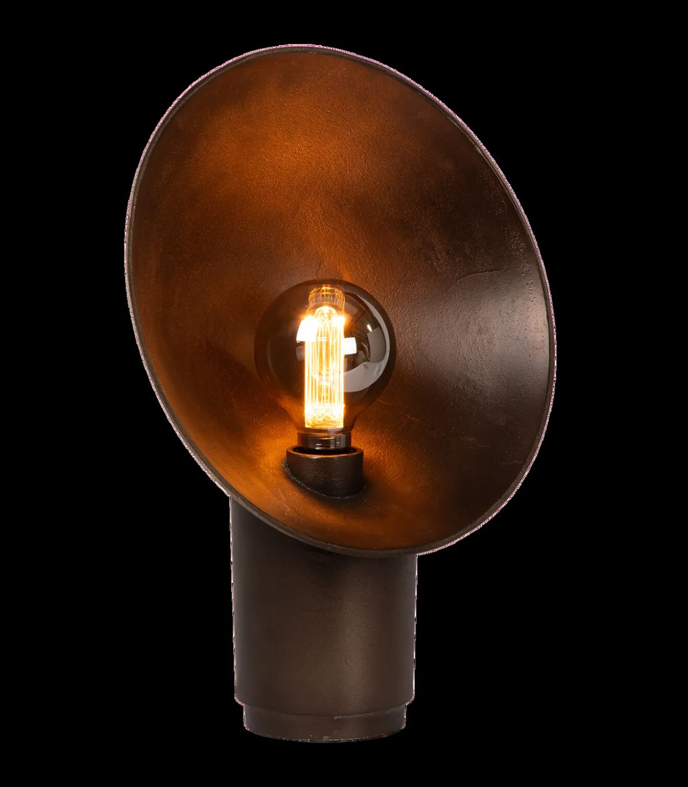 De tafellamp Shesmu is een stijlvolle en moderne verlichting met een industriële uitstraling. De lamp is volledig uitgevoerd in brons en heeft een robuuste, cilindervormige voet gecombineerd met een cirkelvormige plaat als eyecatcher. Met een hoogte van 46 cm, een breedte van 35 cm, en een diepte van 10,5 cm, past de lamp perfect op een dressoir, tv–meubel of wandkast. Shesmu wordt geleverd exclusief E27–lichtbron, waardoor je zelf de gewenste lichtsfeer kunt bepalen. Dankzij het unieke ontwerp is deze tafellamp een opvallende toevoeging aan elk interieur.