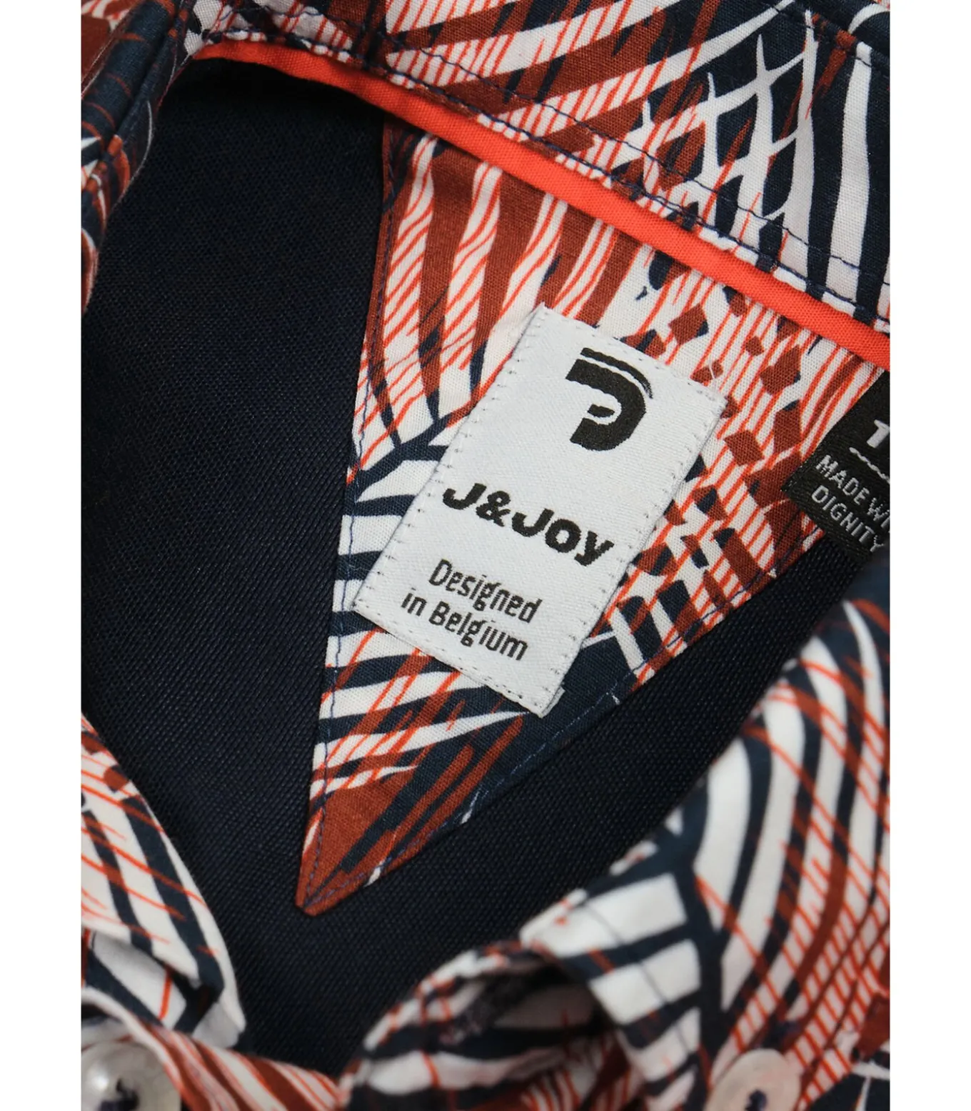 Sterke kleuren en een vleugje exotiek voor dit shirt met lange mouwen, met palmprints. Het materiaal is 100% katoen. De snit is recht. De kraag is klassiek met tips met knoop. Het J & Joy –logo is geborduurd op de borst. Een chique kamer die je shorts en bermudas zal verbeteren.
