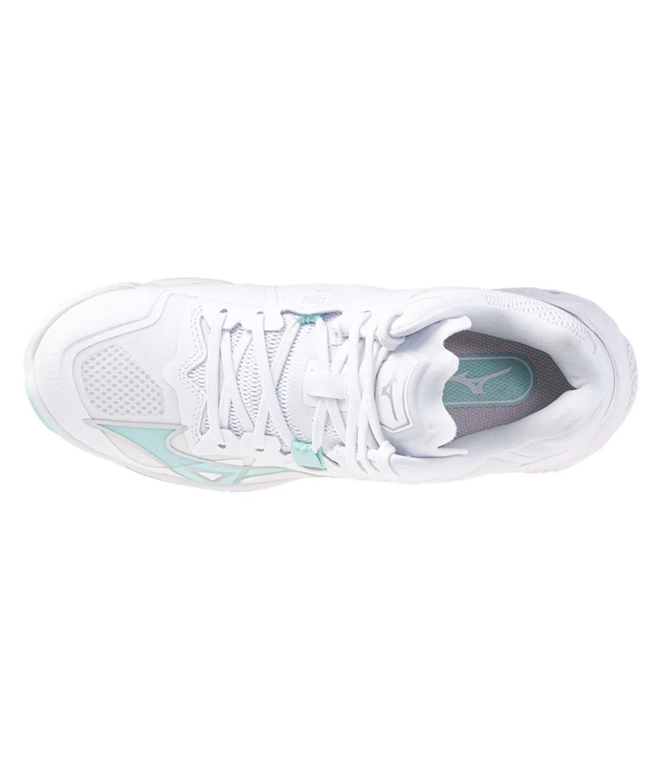 Kleur: Wit/Blauw. Bovenwerk: Lichtgewicht en ademend monofilament mesh met Dyna–Eyelet Wrap structuur voor een nauwsluitende pasvorm. Buitenzool: Speciaal voor indoorvloeren met WAVE structuur en verlengde plaat voor stabiliteit en energieteruggave. Gewicht: 265 g. Details: MIZUNO ENERZY tussenzool en MIZUNO ENERZY NXT in de voorvoet voor demping en energieteruggave, SOCKLINER voor extra comfort, afgeronde hiel voor ondersteuning bij het springen, D–Flex Groove technologie voor snelle richtingsveranderingen, Dura Shield bescherming op de neus, DynamotionFit design voor aanpassing aan de voet in elke fase van het spel. Gebruik: Lichtgewicht en high–performance dames handbalschoen, ideaal voor explosieve sprongen, snelle bewegingen en maximale stabiliteit tijdens indoorwedstrijden.