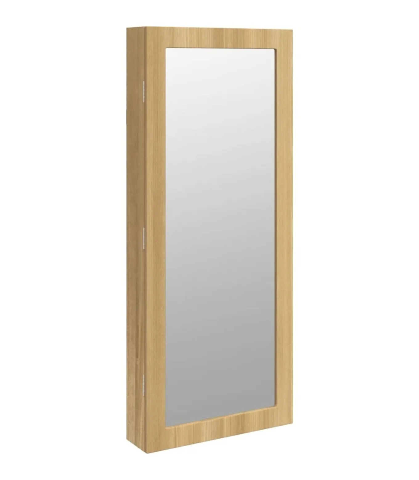 Ruimtebesparend ontwerp: hang de sieradenspiegel met de inbegrepen haken over de deur heen of bevestig hem aan de muur om vloerruimte te besparen.