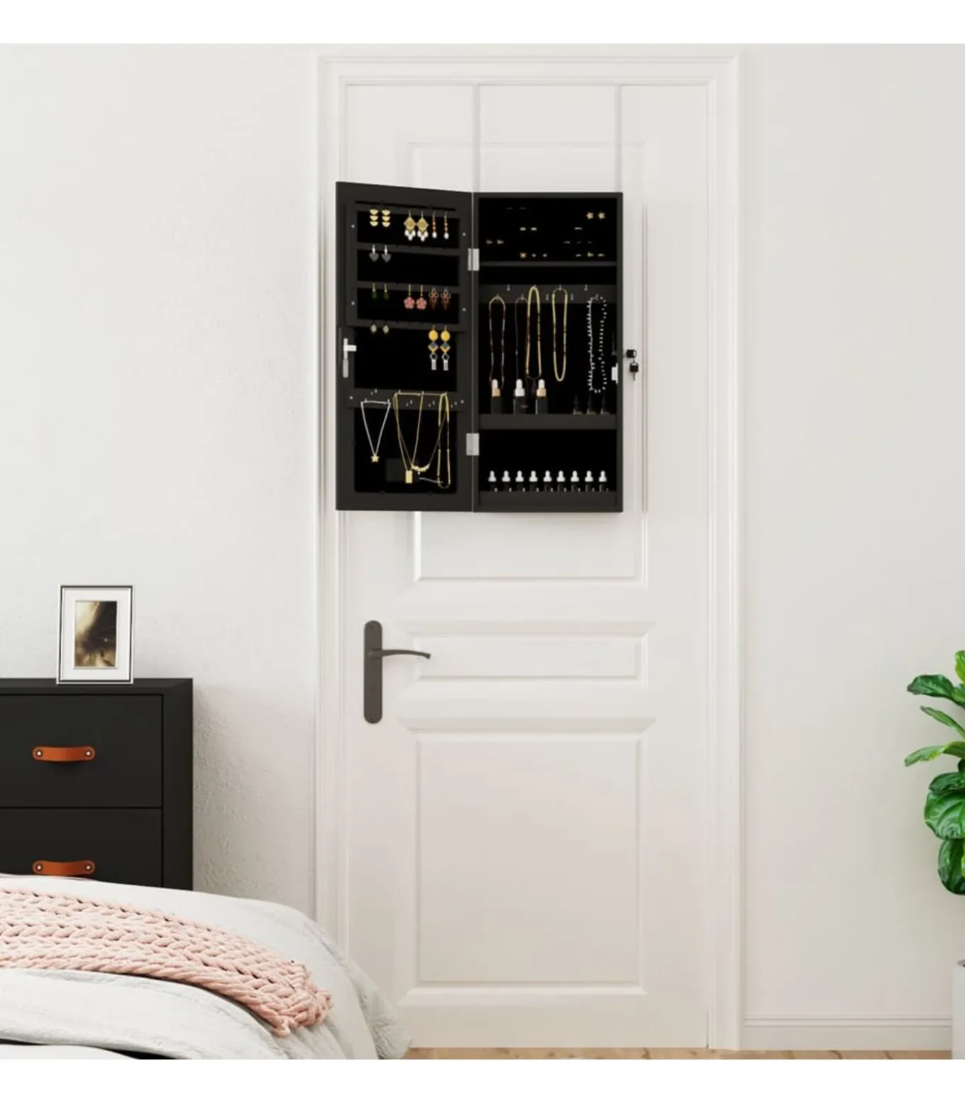 Voldoende opbergruimte: de spiegel met opbergruimte heeft veel haakjes, hangers en plankjes om je sieraden netjes geordend en binnen handbereik te houden.