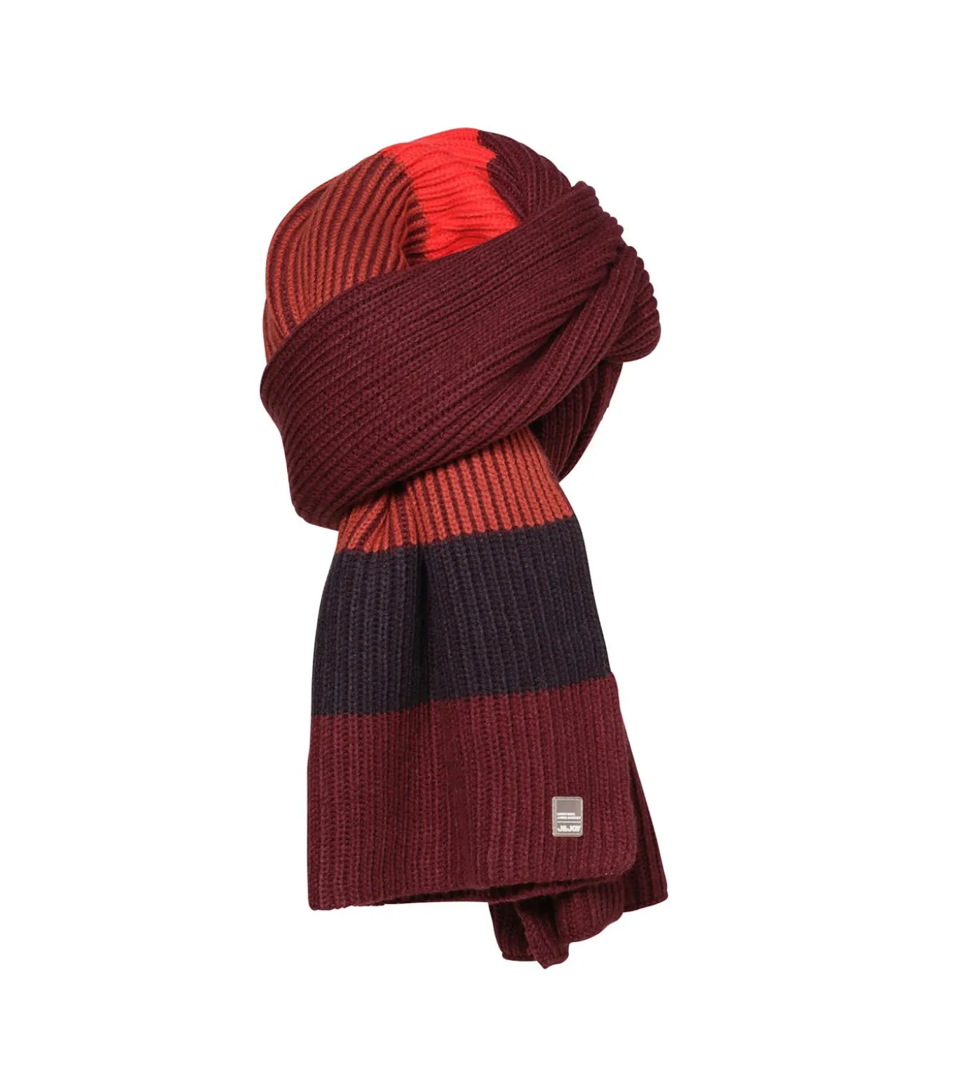 Kleurrijk gestreepte sjaal in Wales Fog–stijlGemaakt van 50% katoen en 50% acryl voor optimale warmte en comfortMix van veelkleurige kleuren, passend bij elke outfitVersierd met een J&JOY–badge aan de onderkant voor een vleugje originaliteit en stijlIdeaal accessoire om je look compleet te maken met een vleugje kleur en fantasie.
