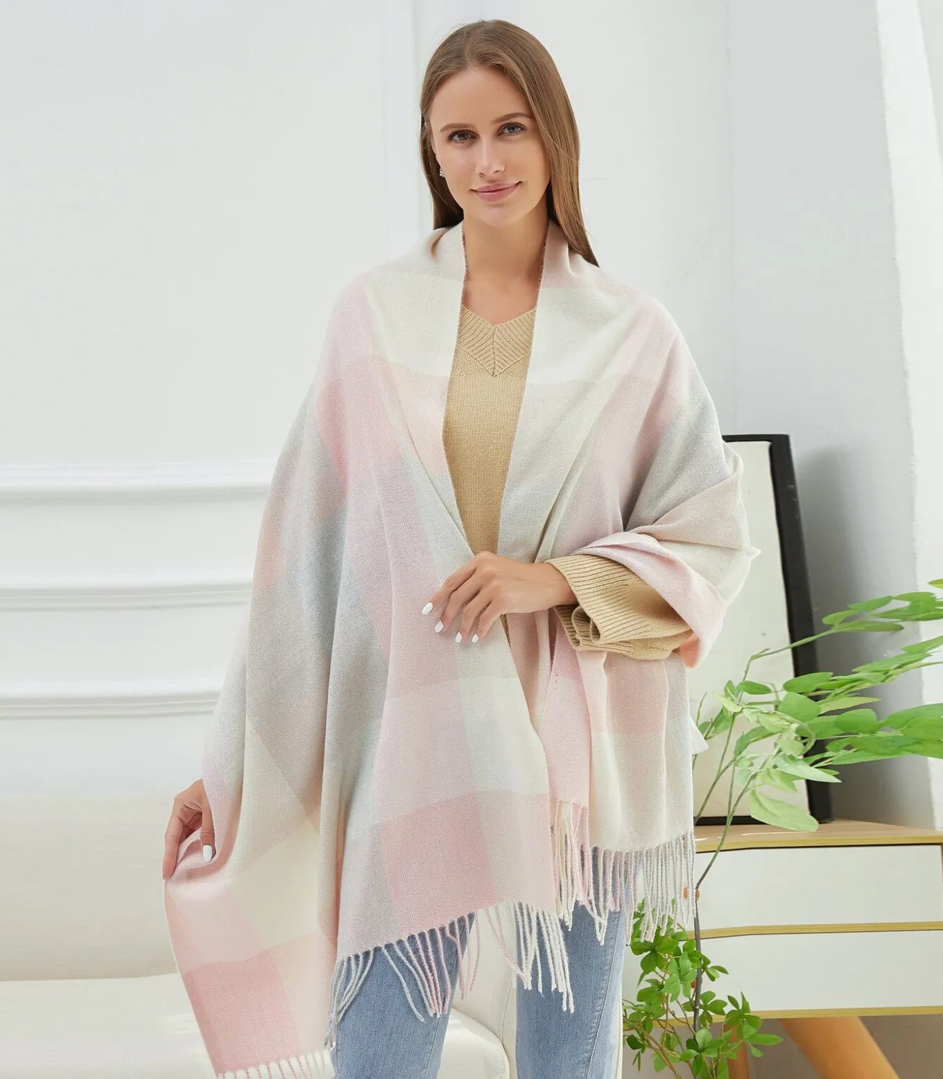 Écharpe 100% Cachemire ‘VIOLA’ door V 1969 – Luxe, Elegantie & Comfort**Productbeschrijving:**Ontdek de ‘VIOLA’ sjaal van V 1969, die warmte, zachtheid en verfijning combineert. De grote ruiten en elegante overgangen, in warme en moderne kleuren, voegen een vleugje Franse elegantie toe.**Belangrijkste kenmerken:**– **Luxe Materialen**: Gemaakt van 100% kasjmier, biedt deze sjaal uitzonderlijke zachtheid en duurzaamheid.– **Chic & Modern Design**: Grote ruiten en elegante overgangen voor een moderne en verfijnde stijl.– **Veelzijdigheid in Stijl**: Royale afmetingen (180×65 cm) die meerdere draagmogelijkheden bieden.– **Prestigieus Merk**: V 1969, bekend om zijn toewijding aan kwaliteit en luxe.Omarm de ‘VIOLA’ sjaal als een onmisbaar item in je garderobe, synoniem voor luxe, comfort en elegantie.**Productdetails:**– **Samenstelling**: 100% kasjmier– **Afmetingen**: 180×65 cm– **Merk**: V 1969– **Referentie**: VIOLAGun jezelf de luxe van kasjmier met de ‘VIOLA’ sjaal. Bestel vandaag nog voor ongeëvenaarde stijl en comfort.