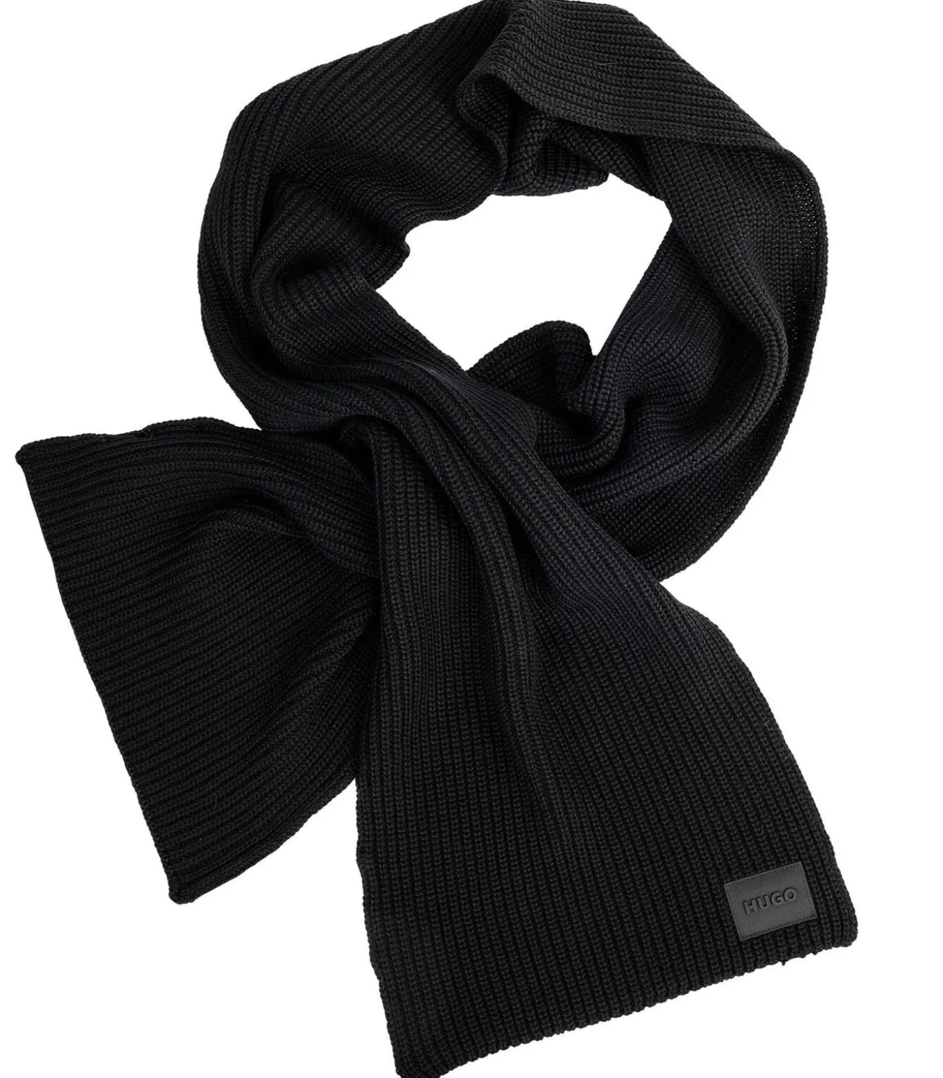 Gebreide sjaal en bijpassende muts in geschenkdoos van HUGO. Aangenaam zachte scheerwollmix. Met subtiel logo–label. Lengte sjaal ca. 172 x 23 cm.