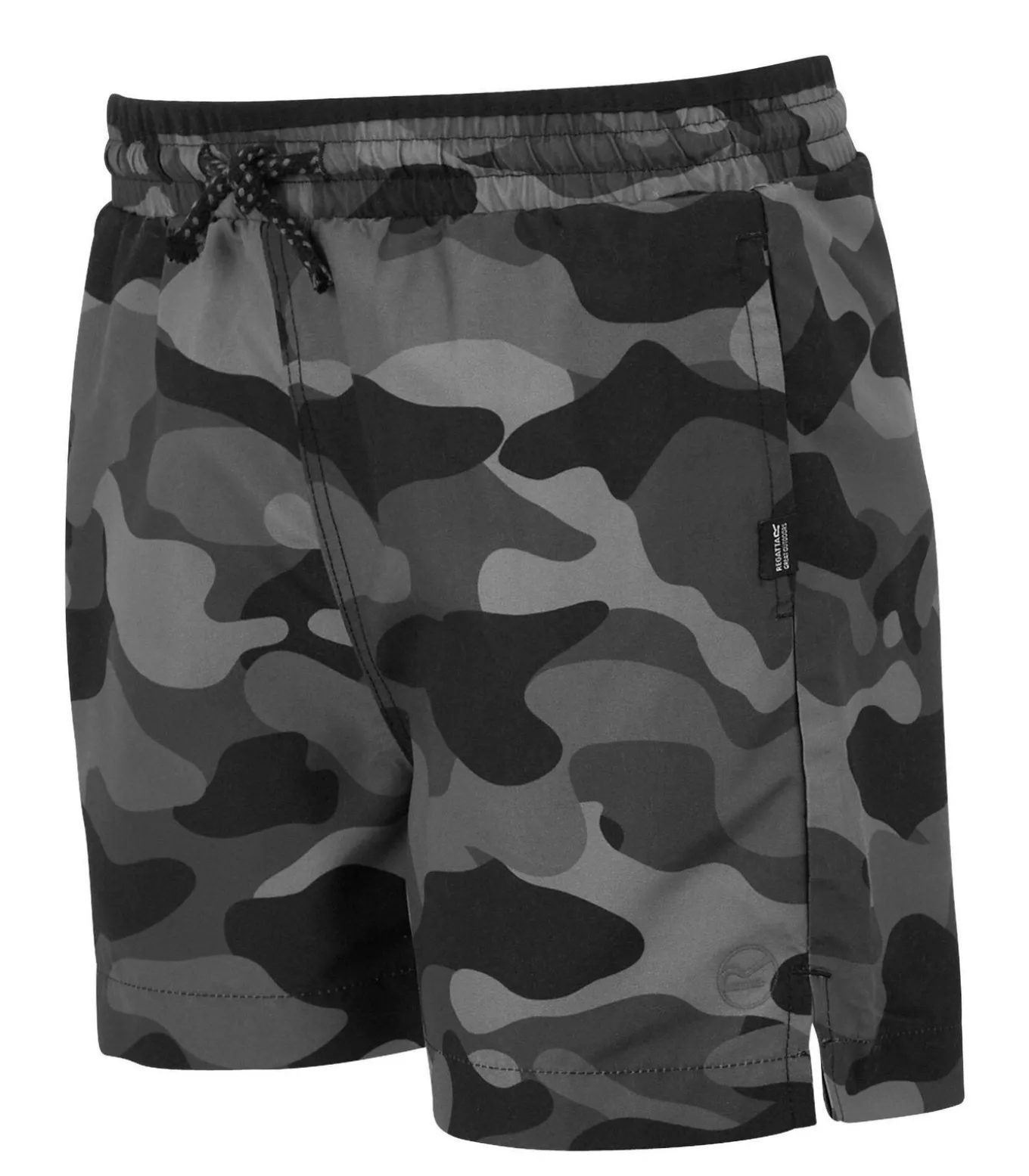 Regatta–merkproduct SKANDER III zwembroek in grijs met de volgende kenmerken: Het zwembroek is gemaakt van 100% hergebruikt polyester. De openingen zijn voorzien van gasvoering en het materiaal bestaat uit microvezels. Het ontwerp is camouflage en het broek heeft twee zijzakken. Het broek wordt gesloten met een contrastkoord en elastiek. Het broek is gemaakt met duurzaam, lichtgewicht, sneldrogend materiaal met UV–bescherming. Het broek beschikt over UPF 50+ zonneschattingsvermogen.