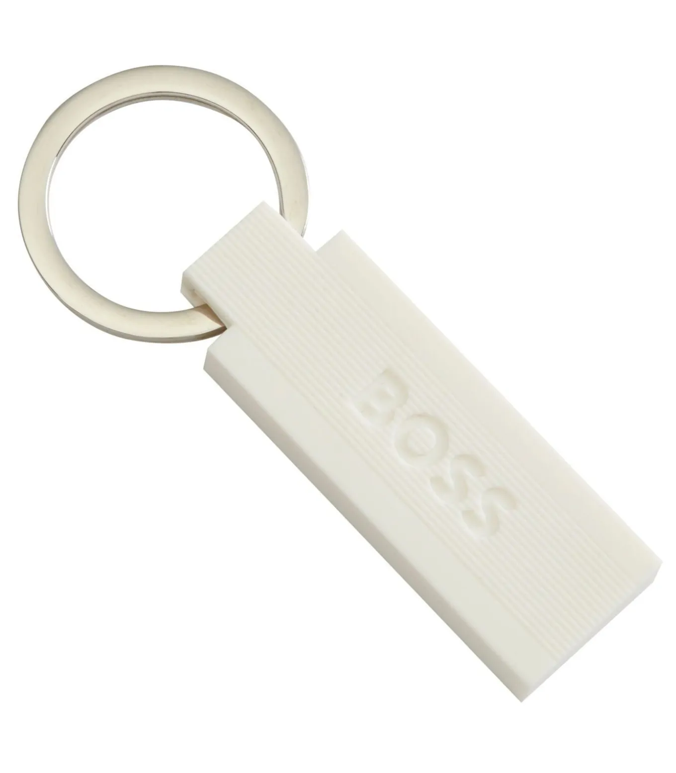 De Edge Iconic sleutelhanger is een heruitgave van een van onze best verkopende artikelen. De siliconen sleutelhanger met chromen accenten is eenvoudig, strak en ingetogen met een subtiel logo. Verkrijgbaar in de iconische kleuren van BOSS: zwart, wit en camel. Dimensions: 20 x 8 x 58/RING:25 mm, Material: 60% Silicone,40% Stainless steel