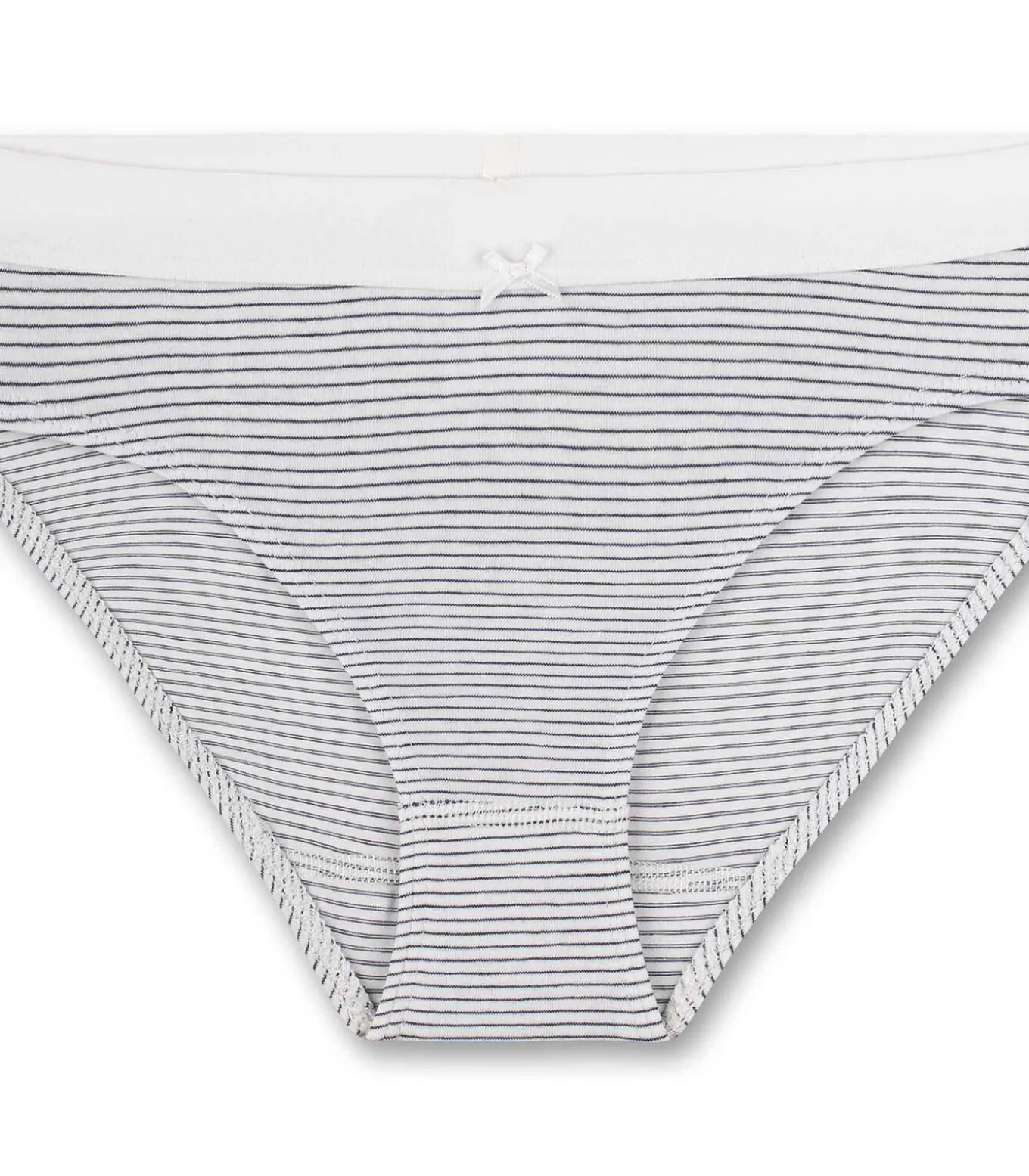 Sanetta slip voor meisjes, fijn gestreept. Elastische geweven tailleband met een klein strikje. Katoenen jersey van hoge kwaliteit.