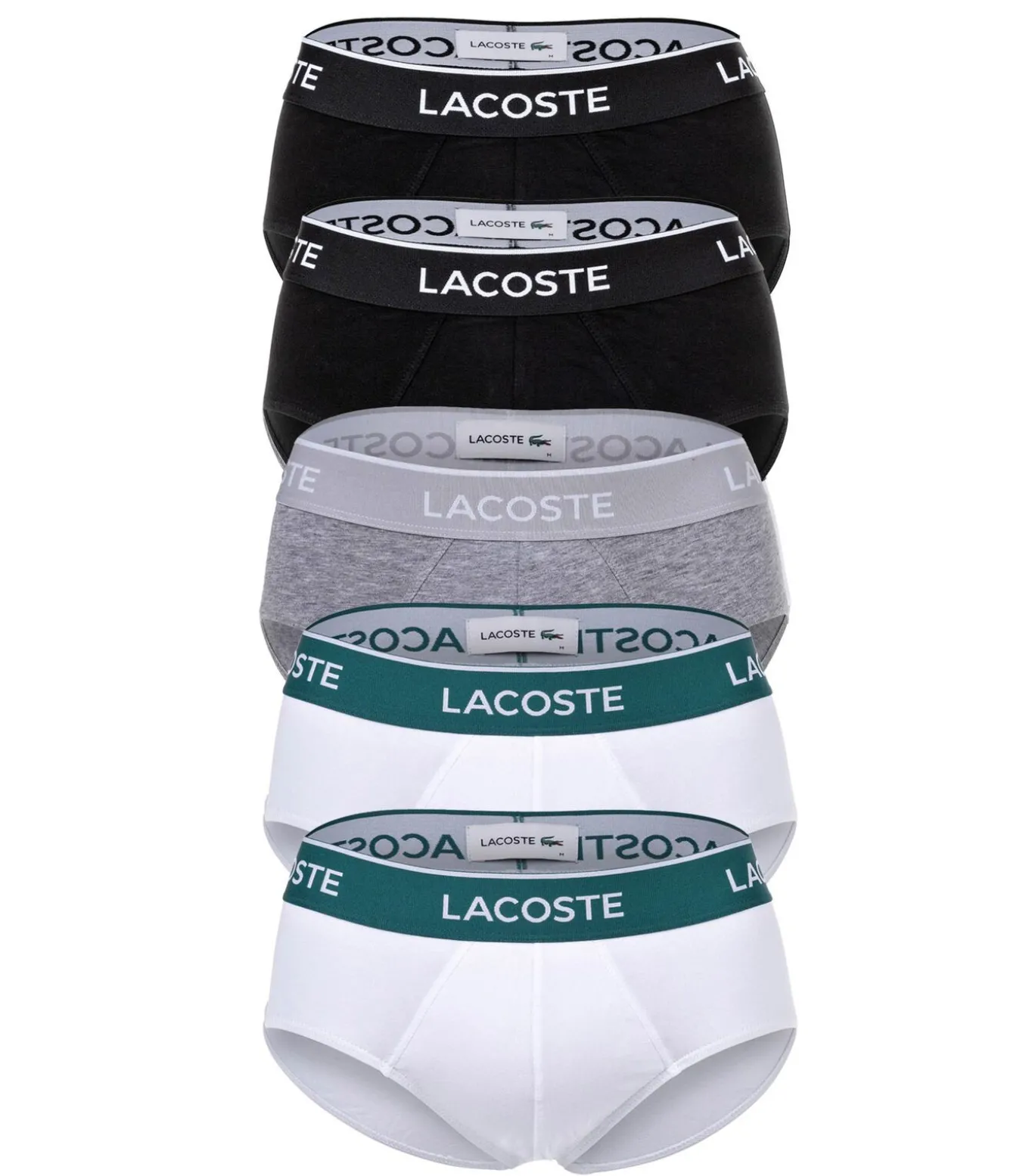 LACOSTE herenslip in een aantrekkelijk 5–pack. Effen basisshort met logoband in stretchkatoen. Perfect voor dagelijks gebruik.