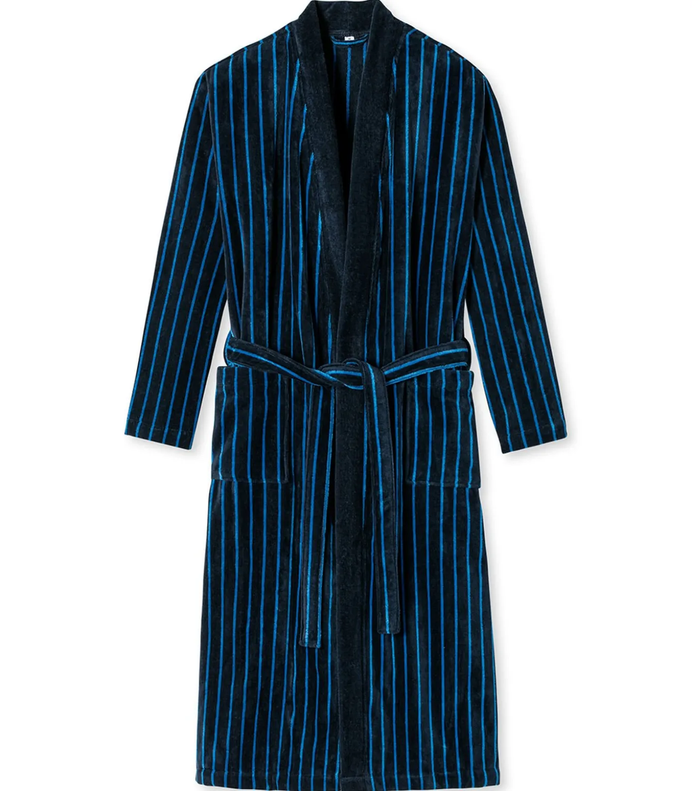 Deze gestreepte herenbadjas verwent u met behaaglijk materiaal en een tijdloos mannelijk design. Warm velours van 100% fijnste katoen zorgt voor maximaal comfort. De tweekleurige strepen benadrukken de elegante uitstraling van de badjas. Precies de juiste metgezel voor mooie uren van welzijn thuis – natuurlijk in de beste kwaliteit!